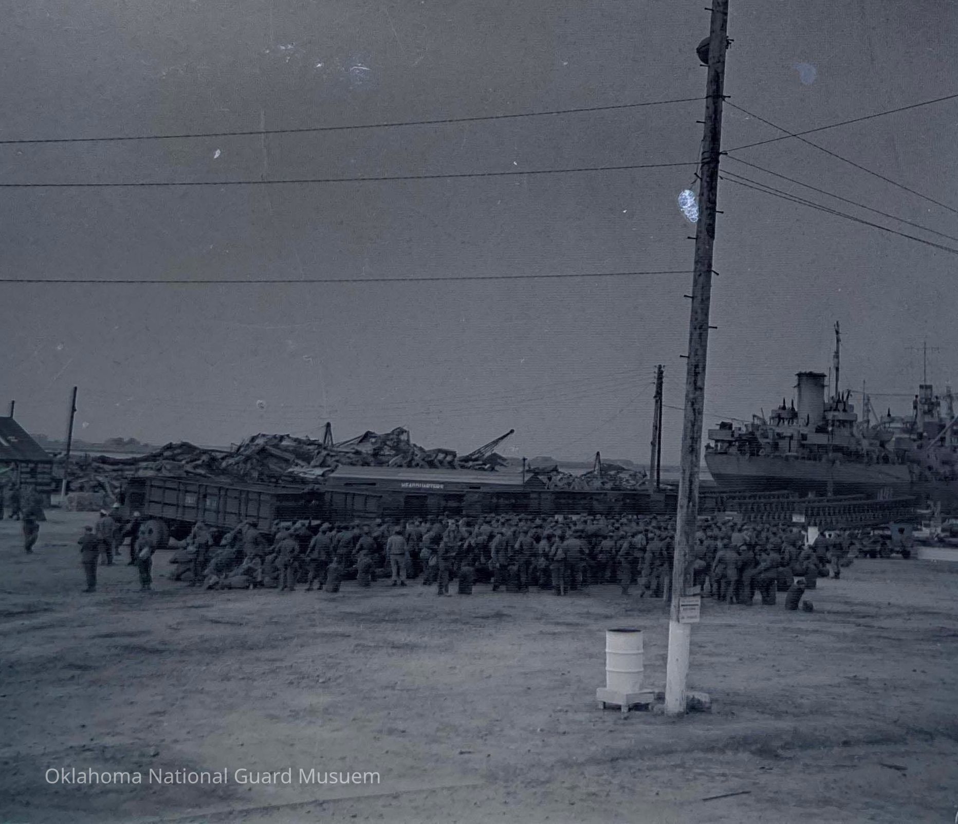 Negative of soldiers in embarkation area