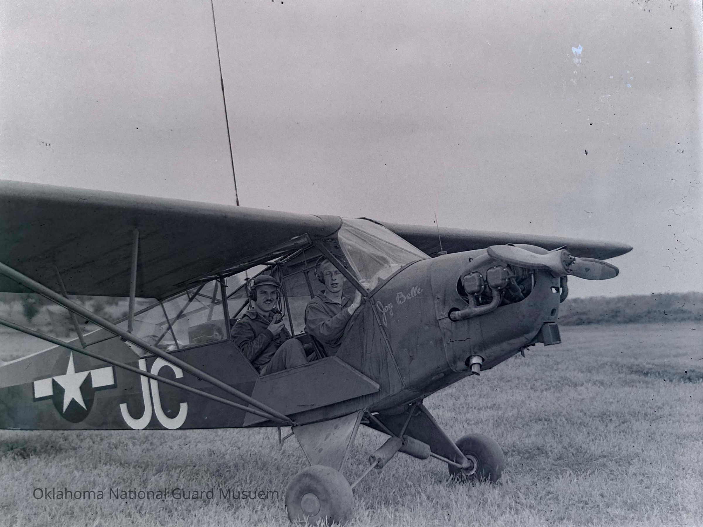 Negative of soldiers in light aircraft
