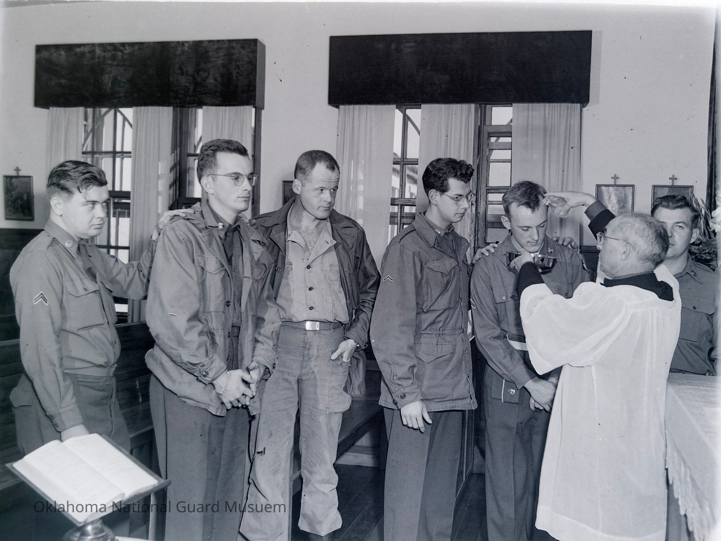Negative of soldiers participating in a religious ceremony