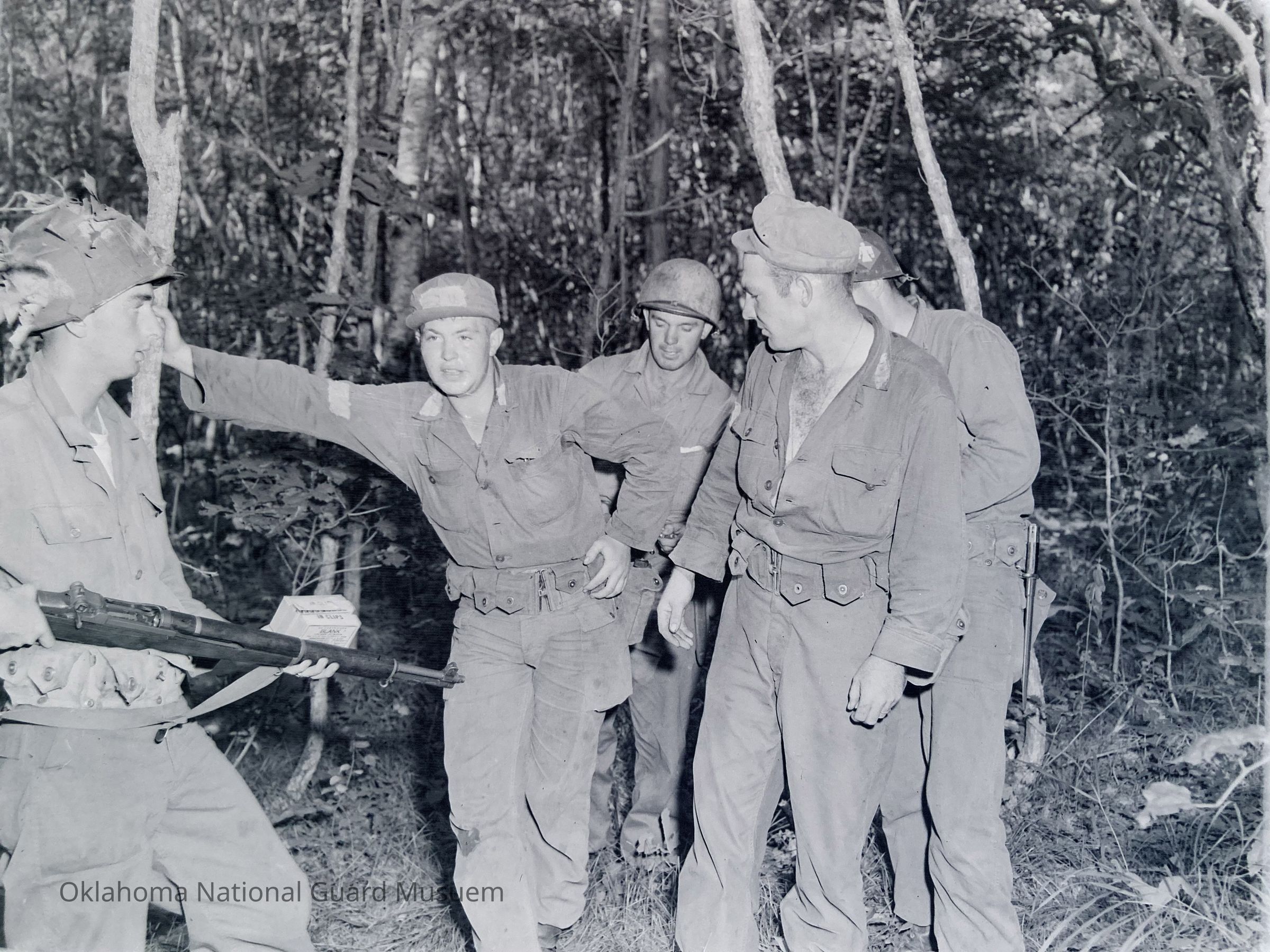 Negative of soldiers participating in a war games exercise on Hokkaido, Japan.