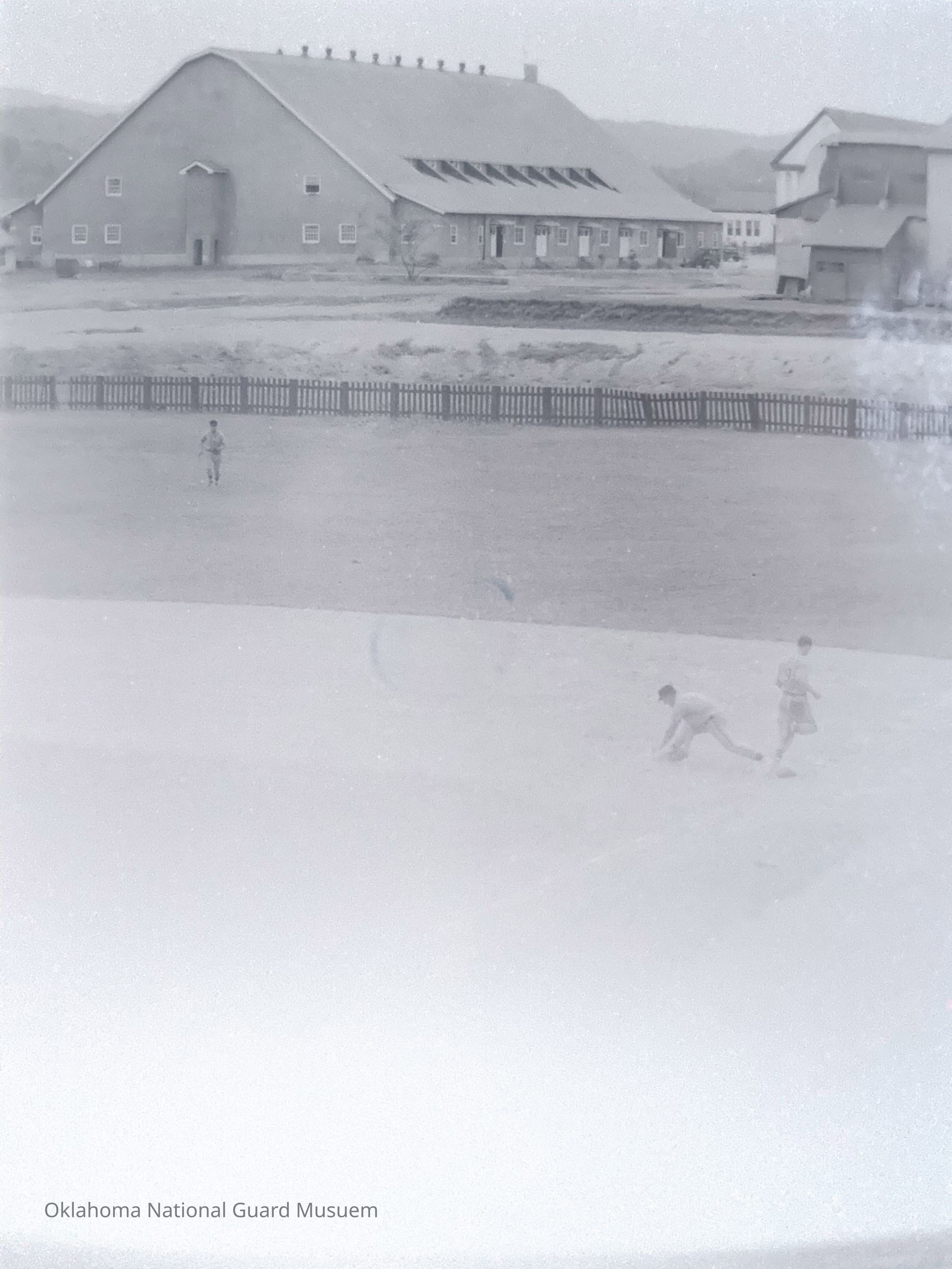 Soldiers, Recreation, Baseball players, Baseball, Sports, Buildings, Military camps