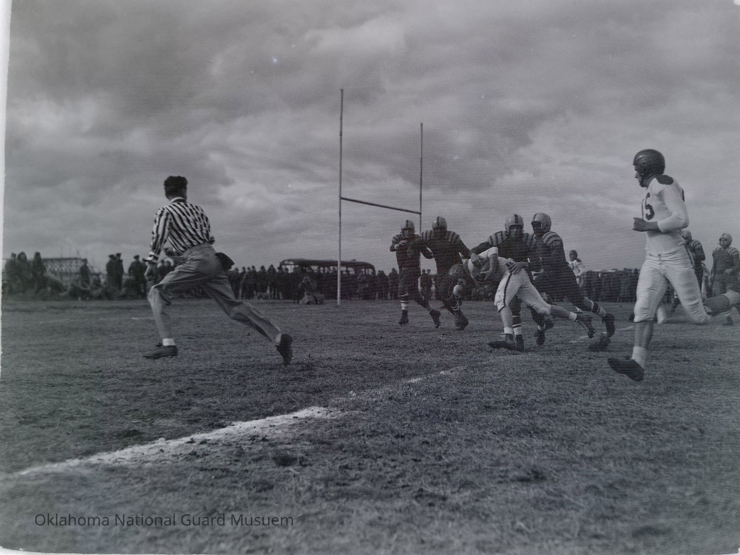 Negative of soldiers playing football on Hokkaido, Japan