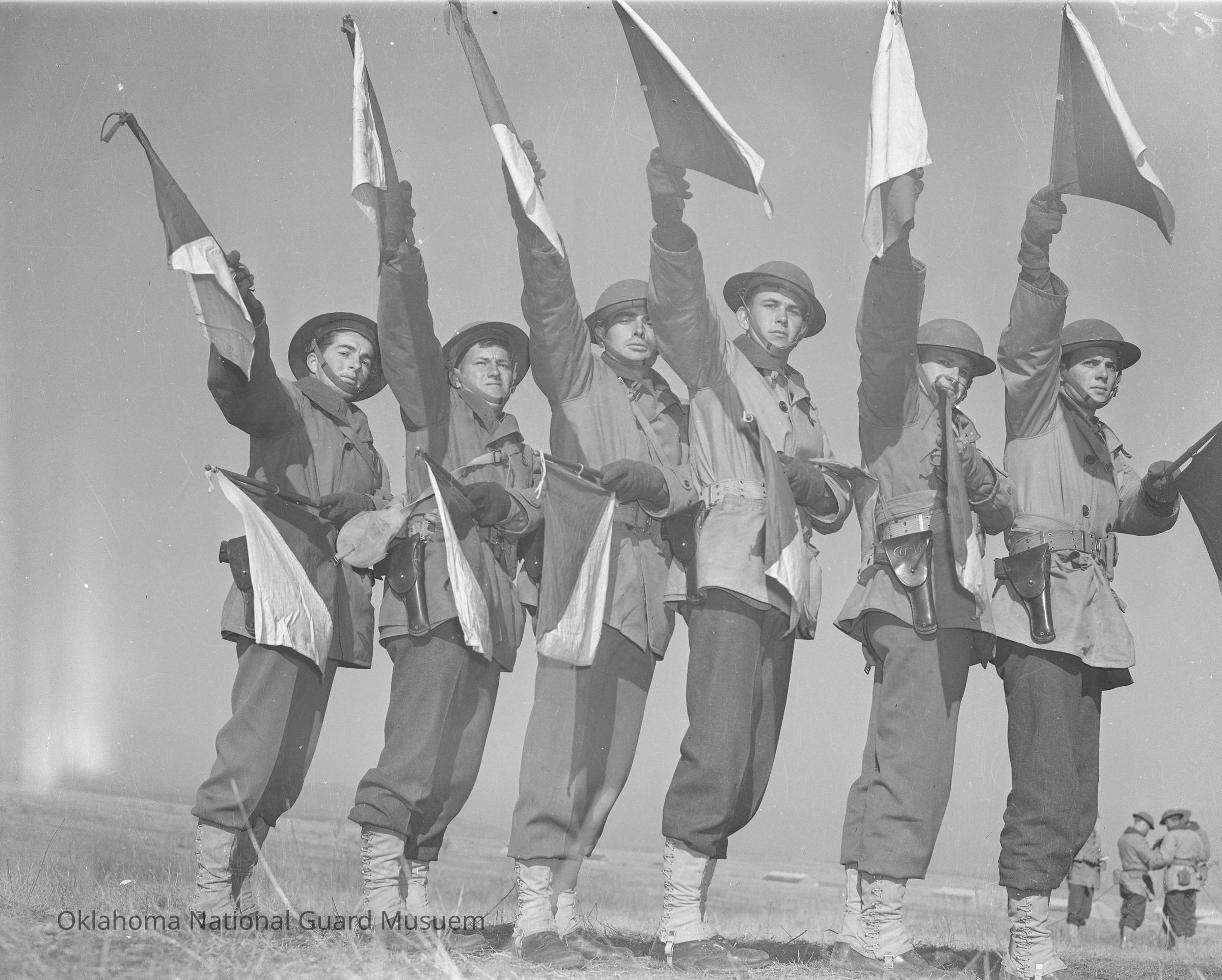 Soldiers posing with signal flags