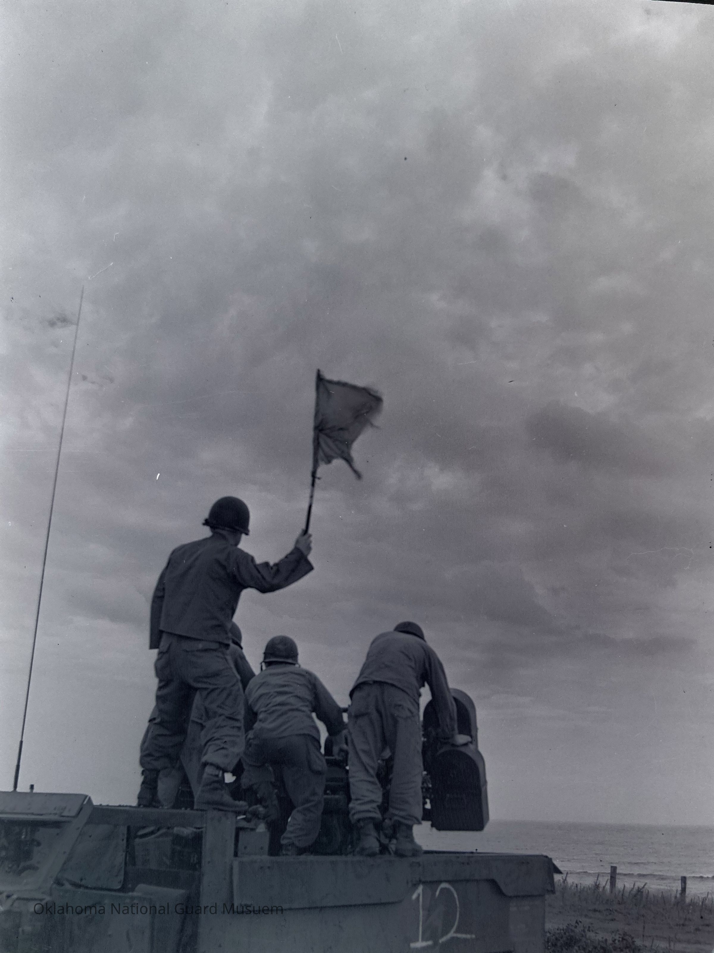 Negative of soldiers practicing with Quad-50 caliber half-track on Hokkaido, Japan. Part of Operation Lex