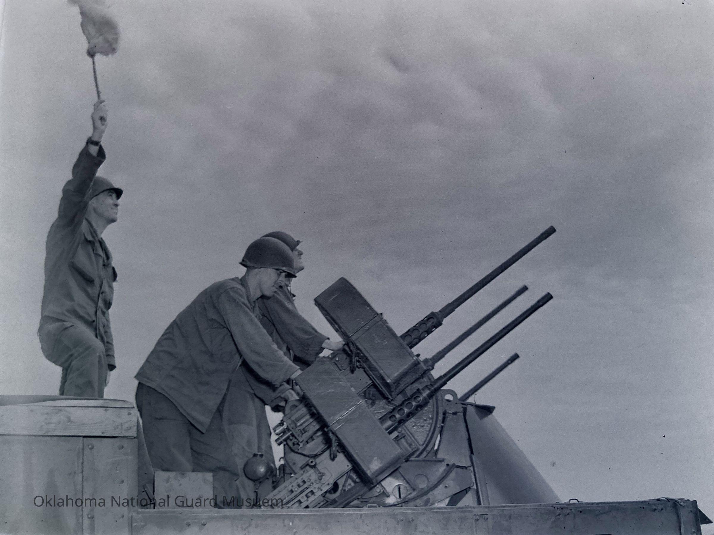 Negative of soldiers practicing with Quad 50 caliber machine guns on Hokkaido, Japan. Operation Lex