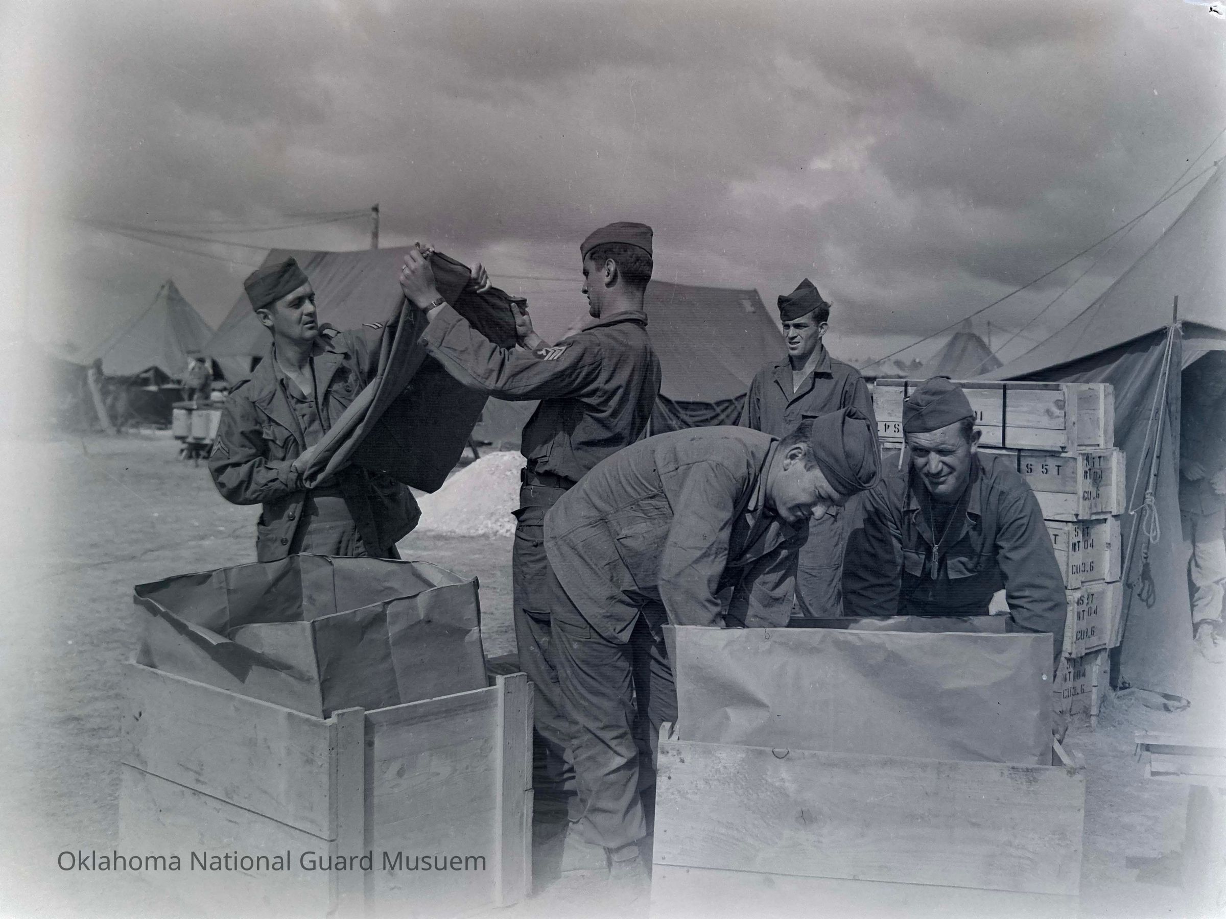 Negative of soldiers preparing to return home
