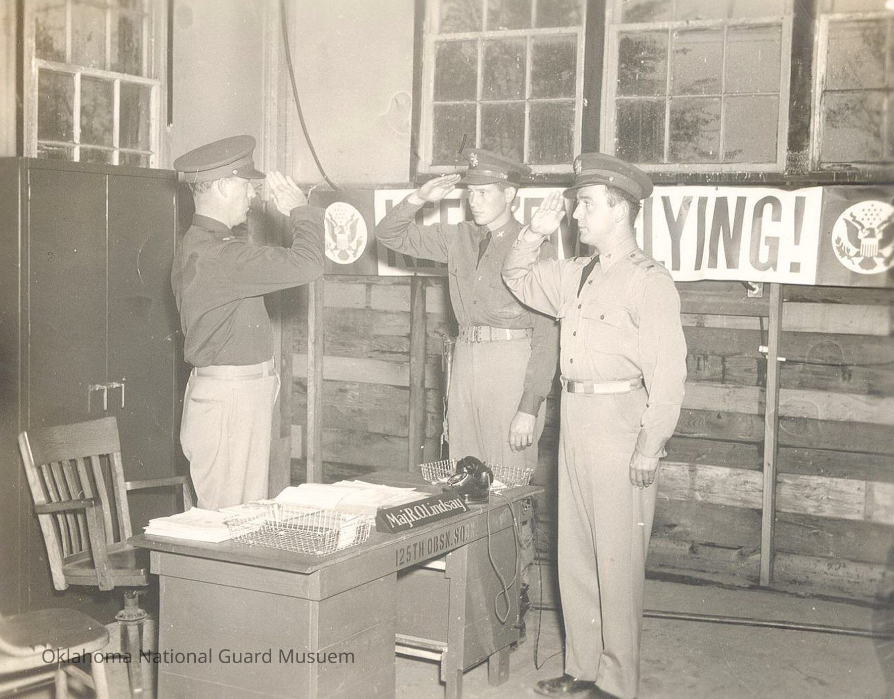 Soldiers saluting Robert Lindsay (commander of the 125th Observation Squadron)
