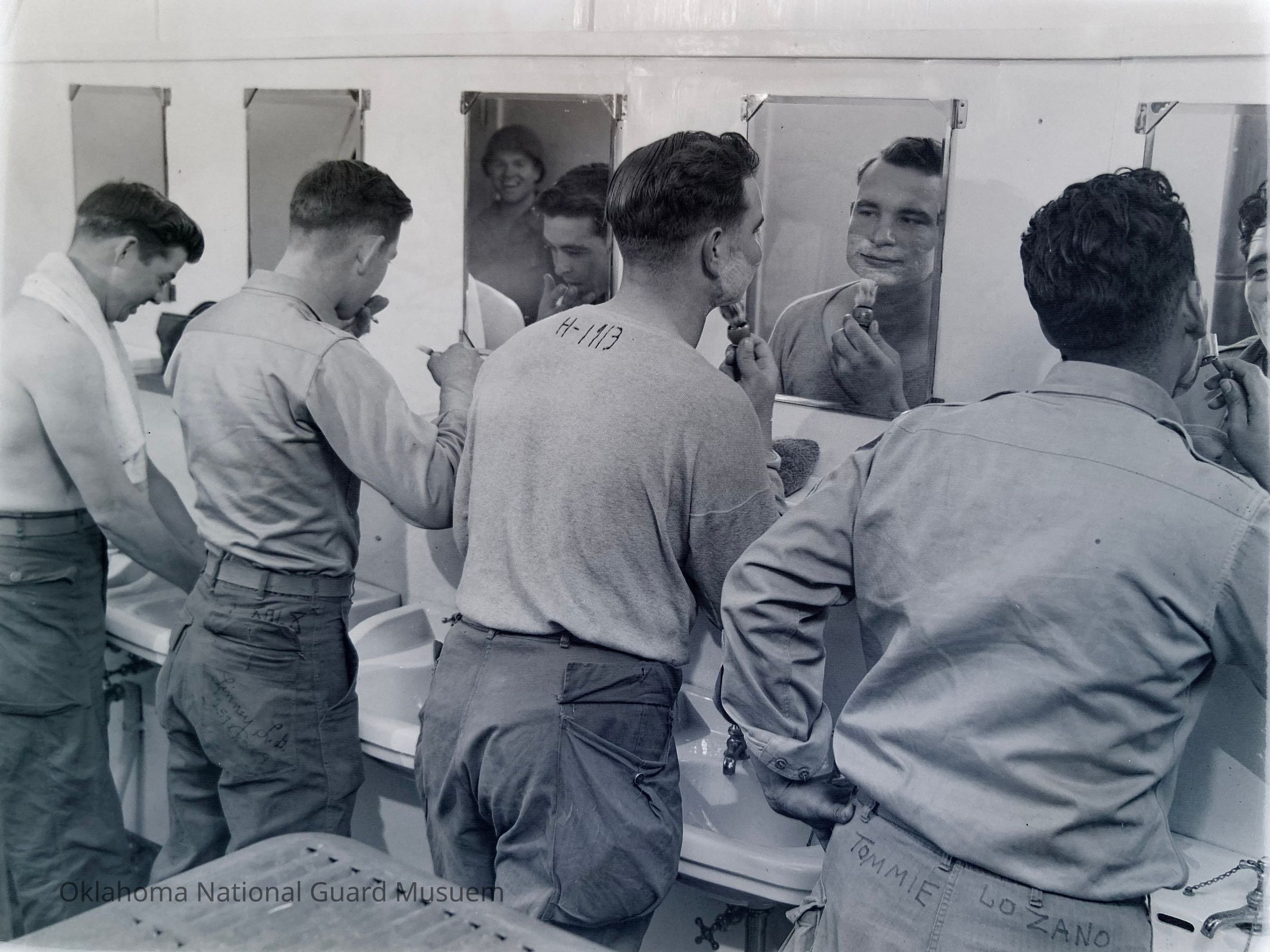 Negative of soldiers shaving