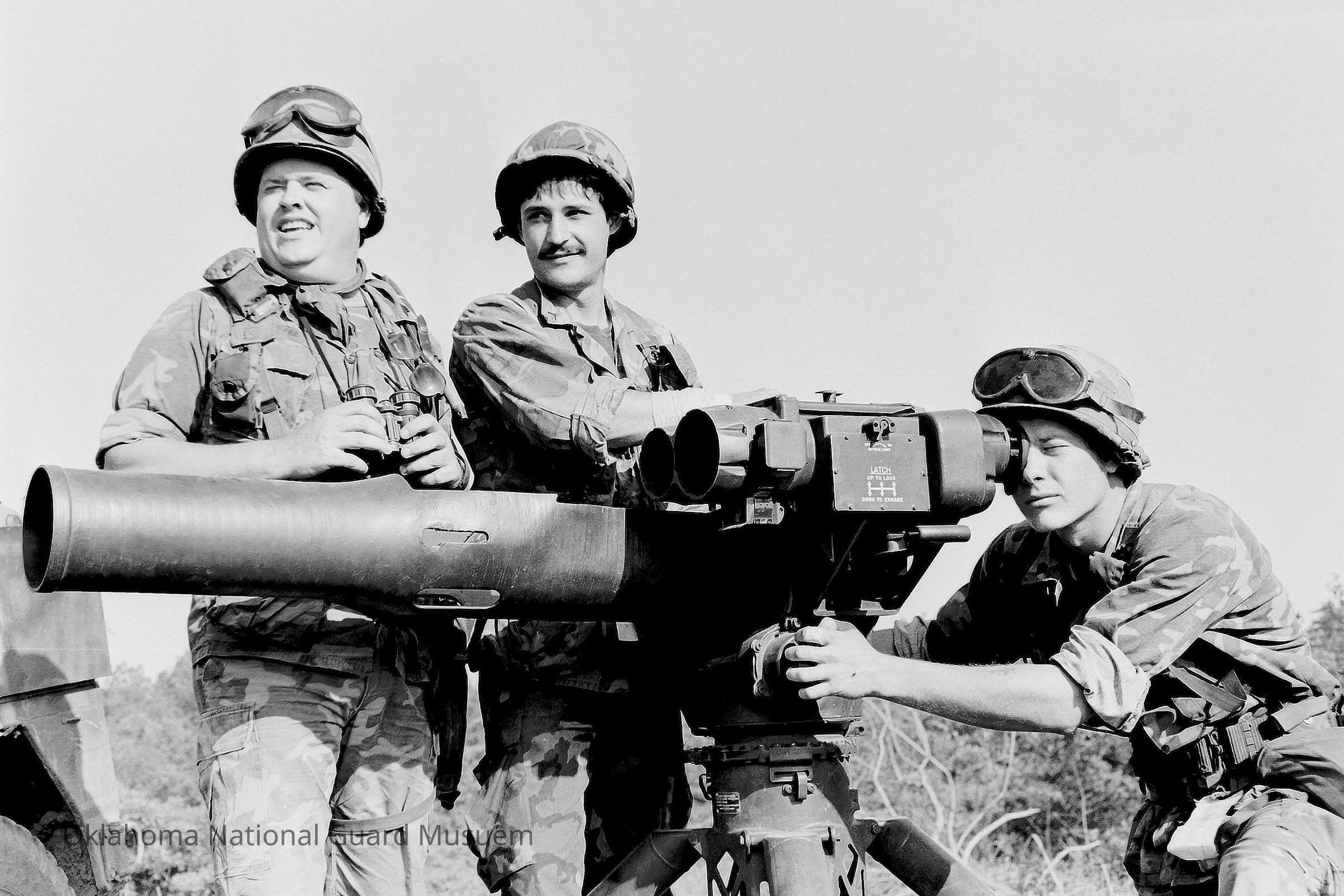 Negative of soldiers sighting a TOW 2 antitank weapon. 180th Infantry