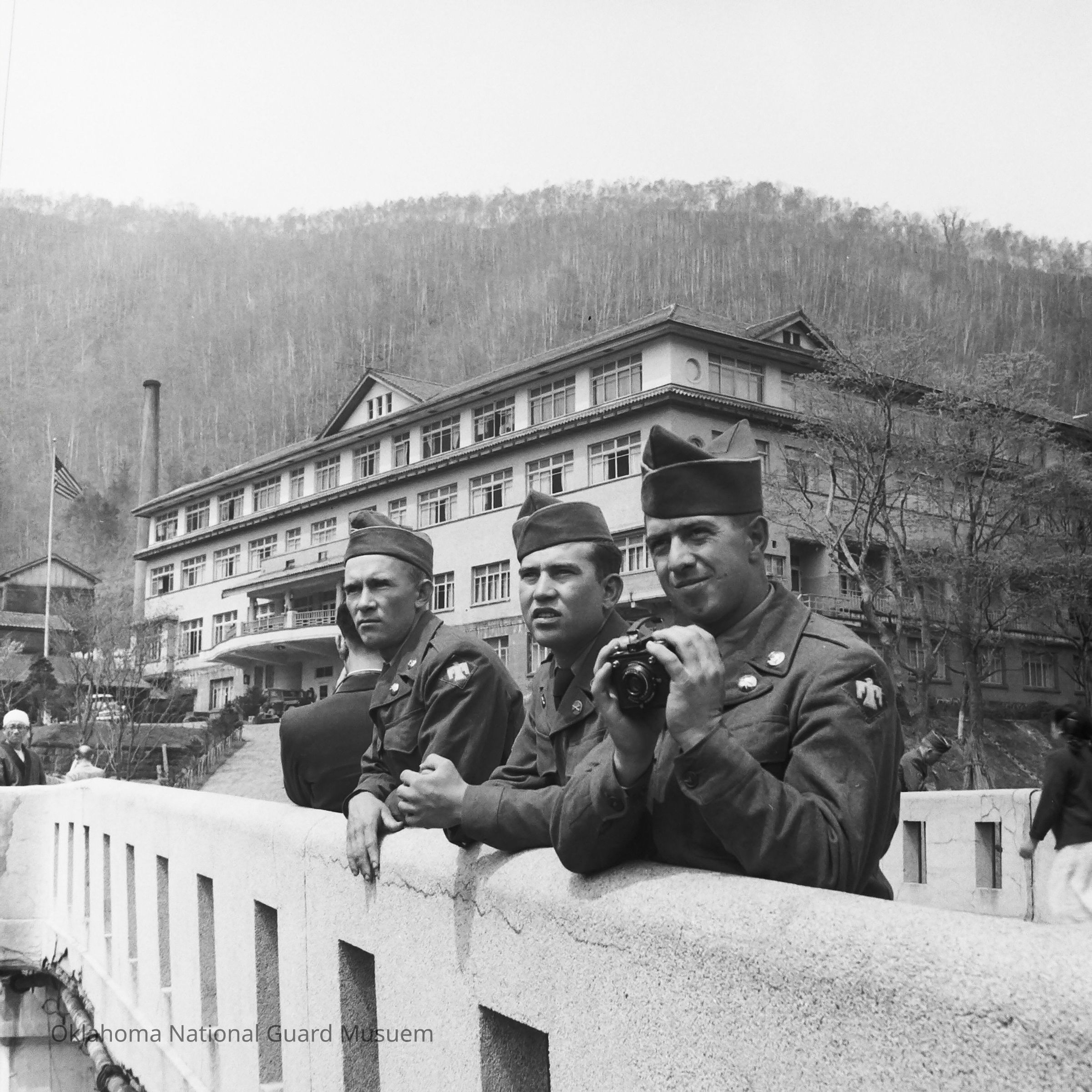 Soldiers sightseeing at the Noboribetsu Hotel