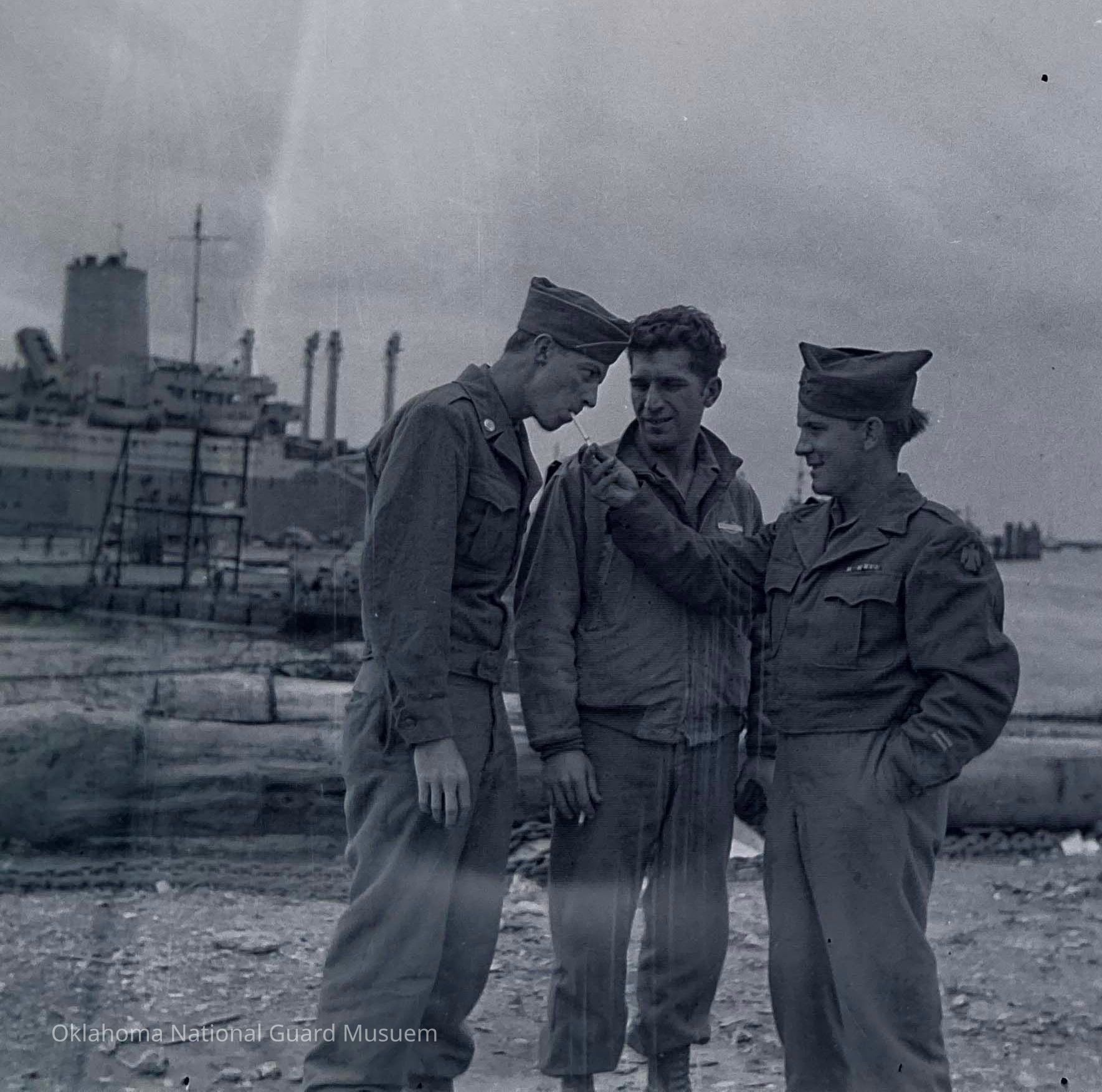 Negative of soldiers smoking