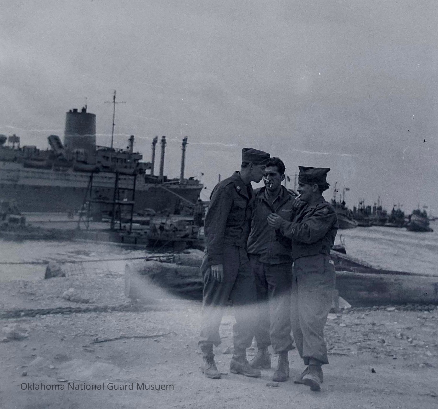 Negative of soldiers smoking