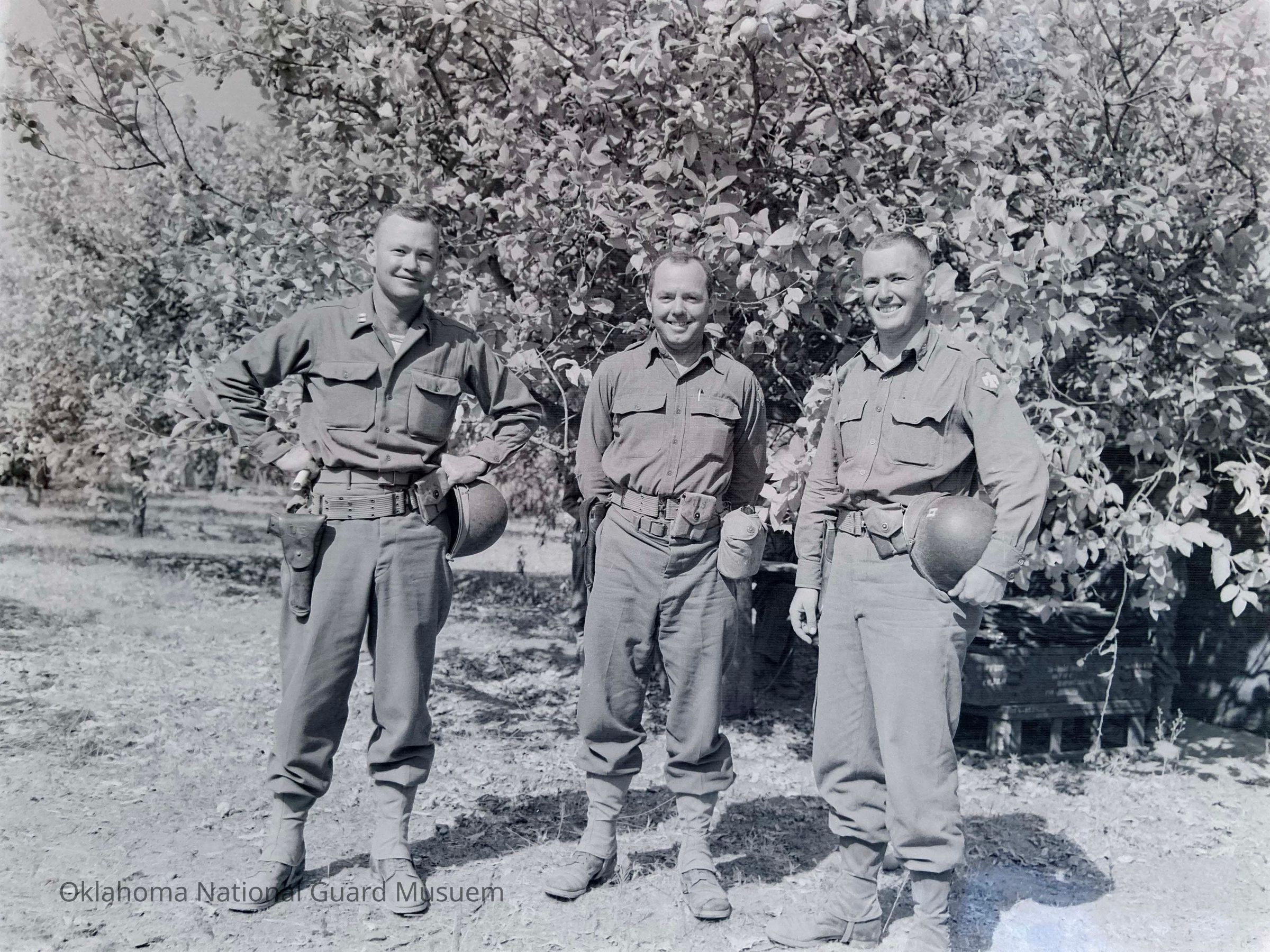 Negative of P.L. McClernon, G.H. Hines, and Ron Strong (left to right)