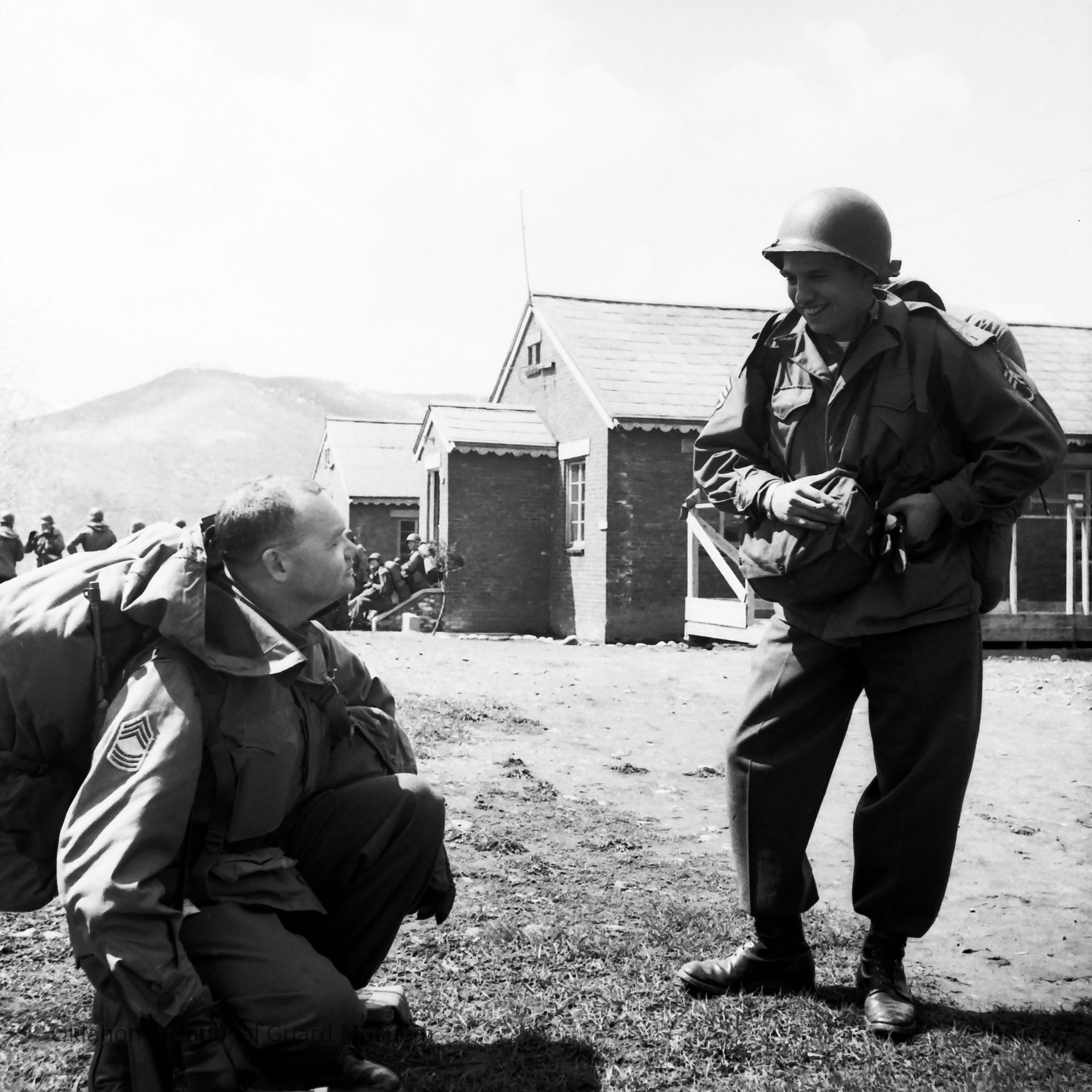 Negative of soldiers with field gear