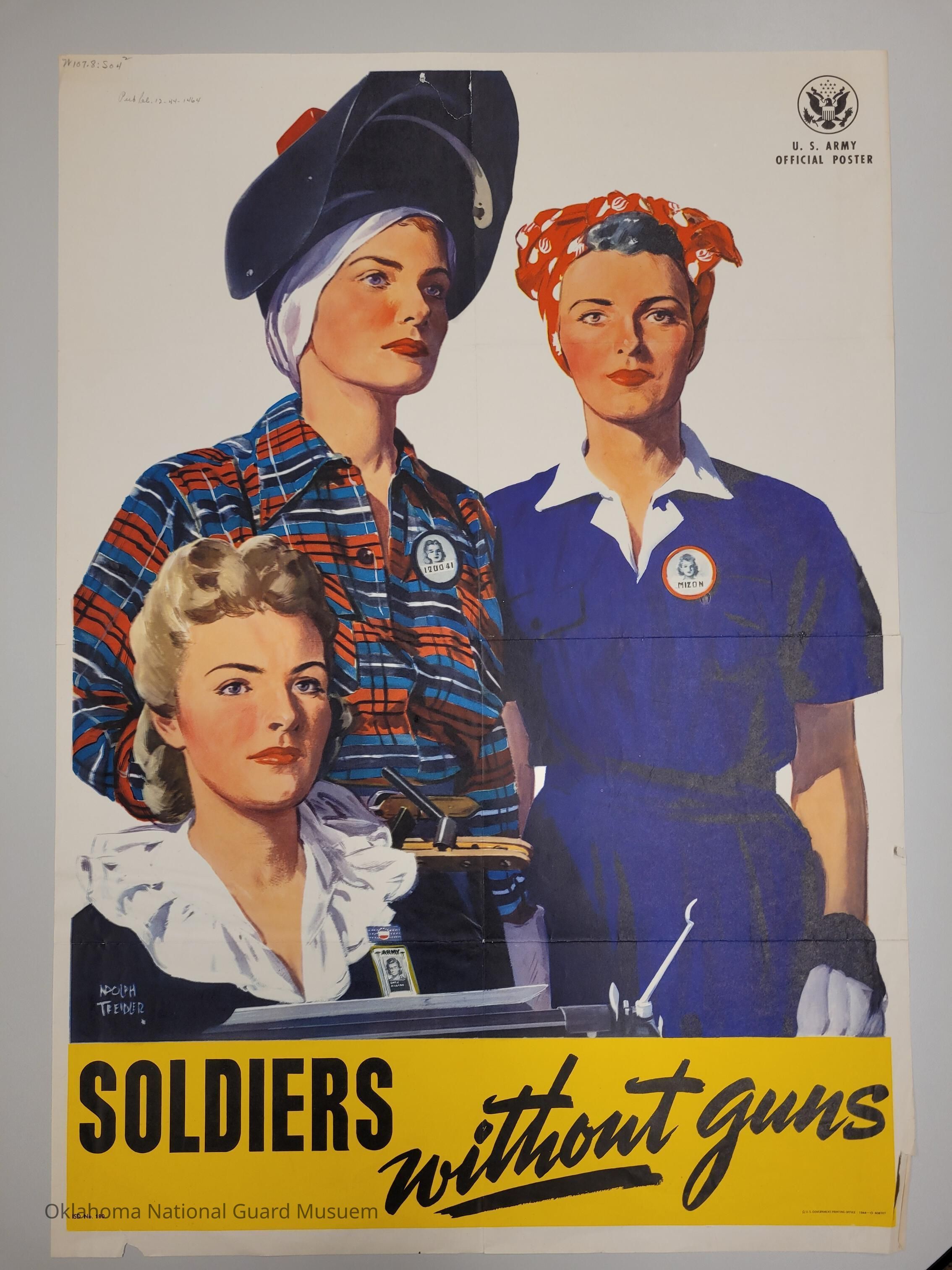 War poster shows three women who work for the war effort an office worker, a welder, and factory workerCollection