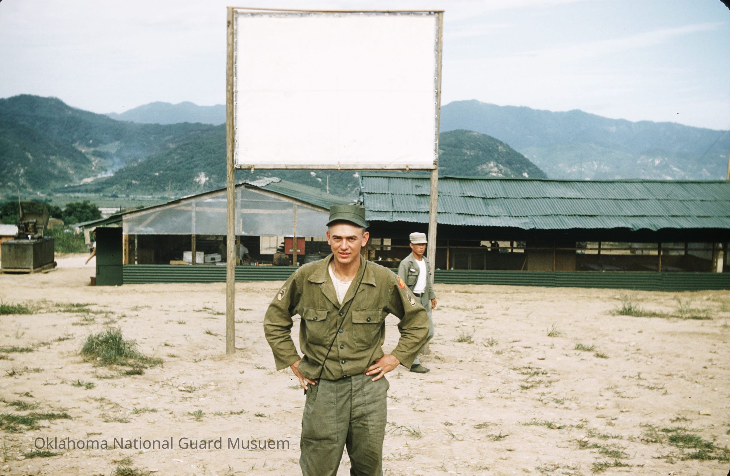Solider in front of sign