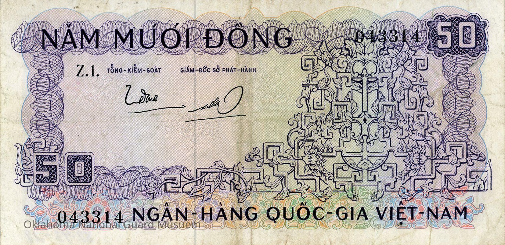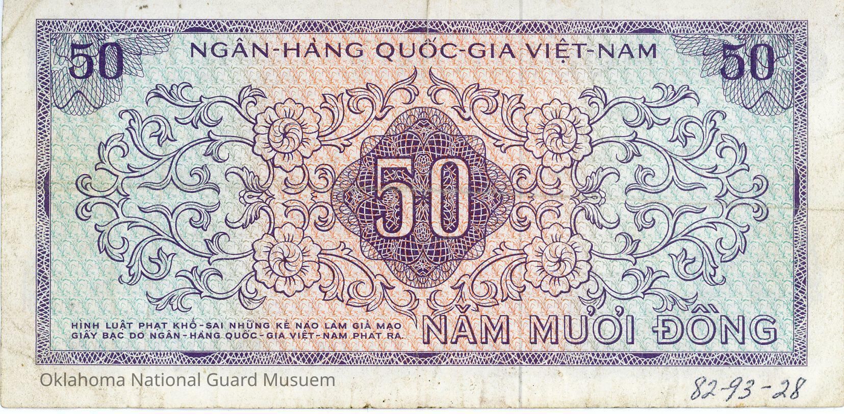 South Vietnamese Fifty Dong-1966. Accession number written on reverse in lower right corner