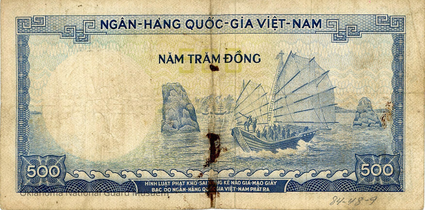 South Vietnamese Five Hundred Dong-1966. Accession number written on reverse in lower right corner