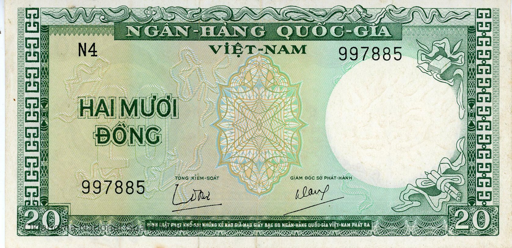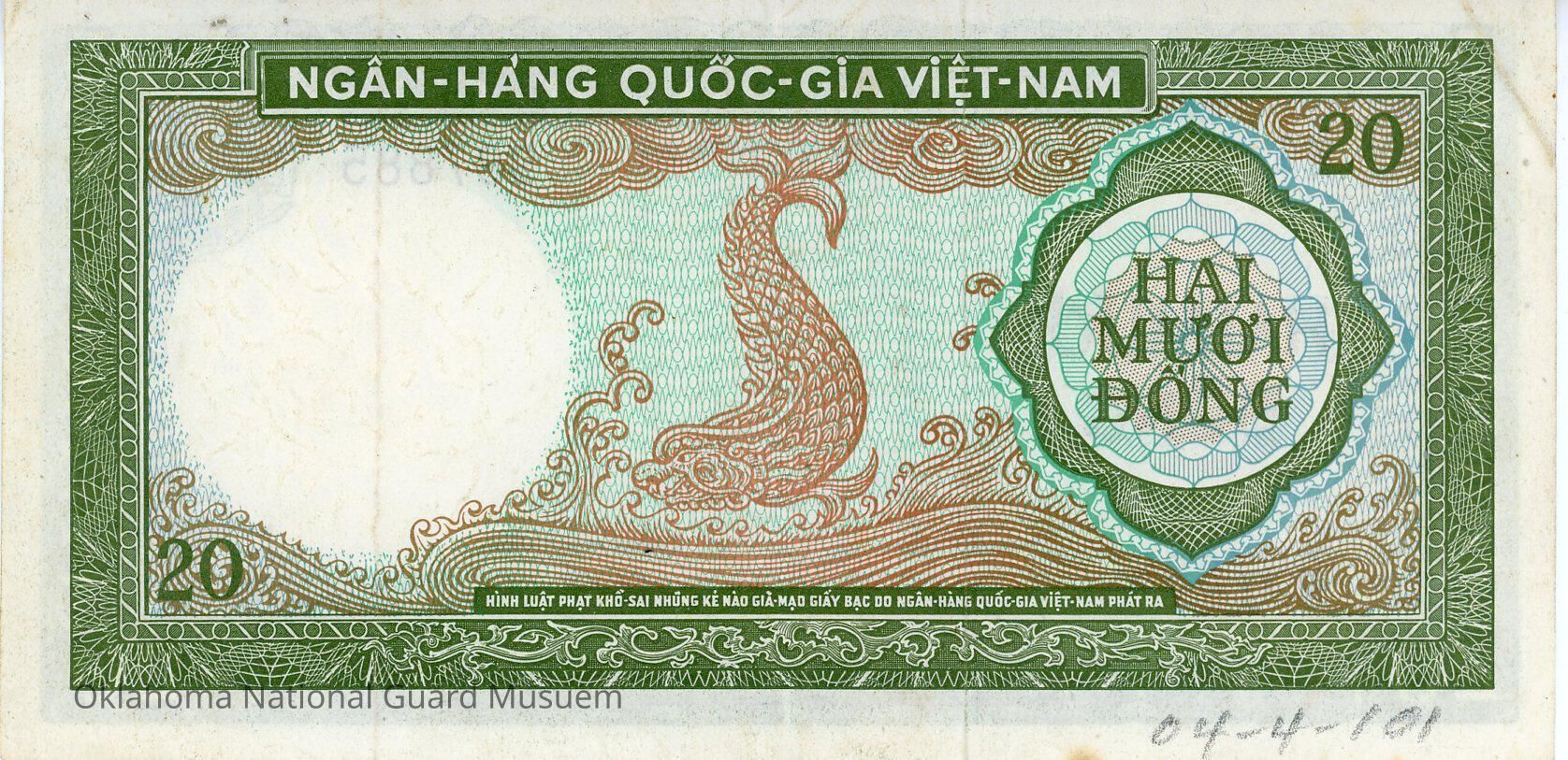 South Vietnamese Twenty Dong-1964. Accession number written on reverse in lower left corner