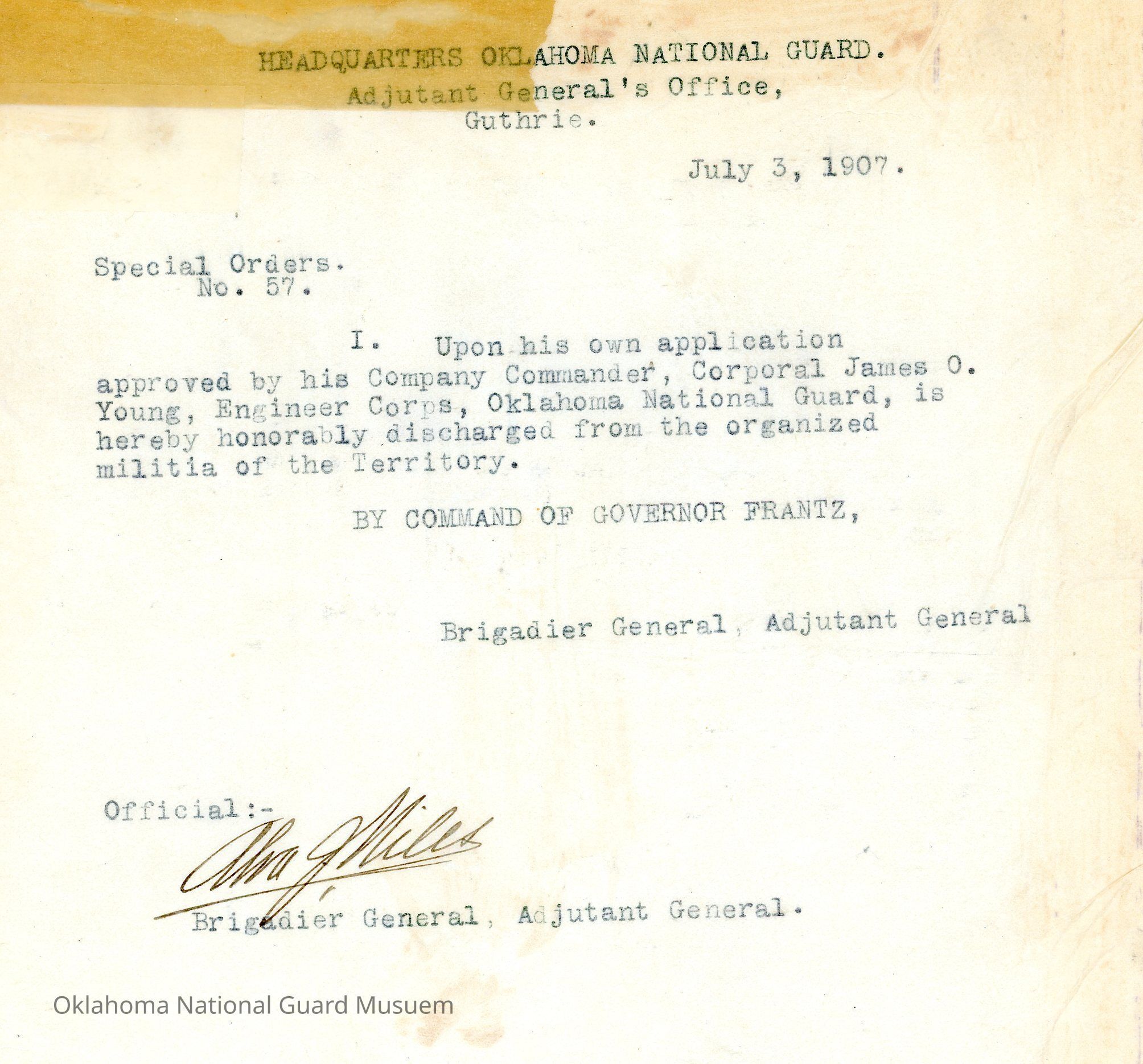 Adjutant General, Guthrie, Alva J. Niles, Honorable discharges, Engineer Corps, James O. Young, Frank Frantz