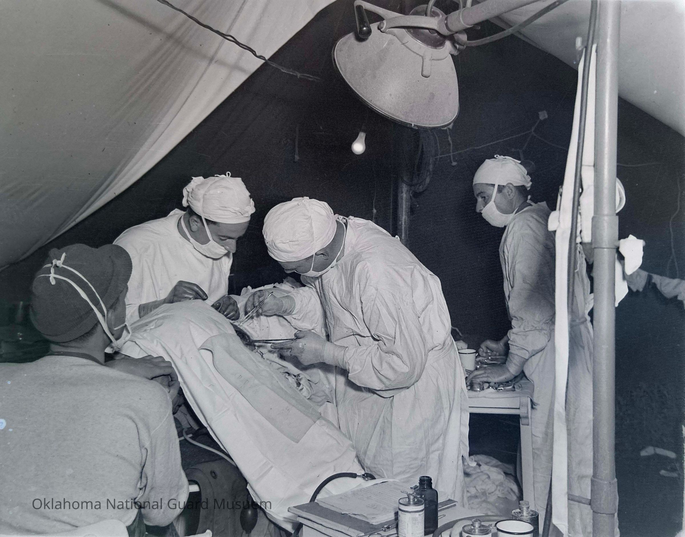 Negative of surgeons operating on wounded soldier