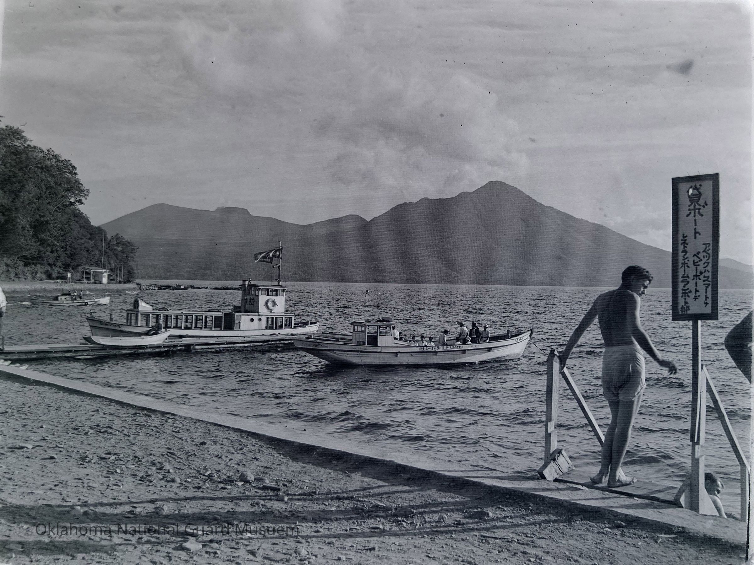 Negative of swimming and boating area on a large lake on Hokkaido, Japan