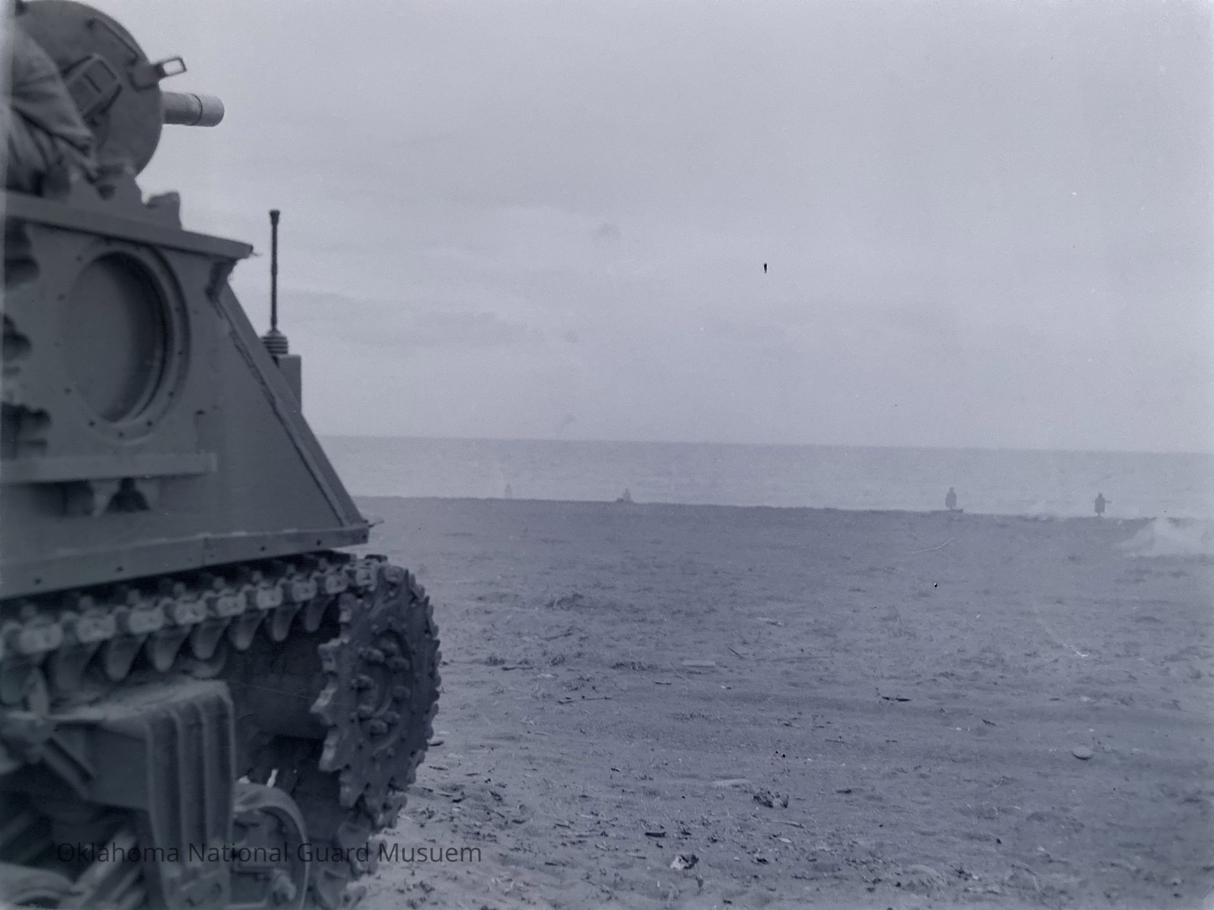 Negative of a tank overlooking a beach area on Hokkaido, Japan