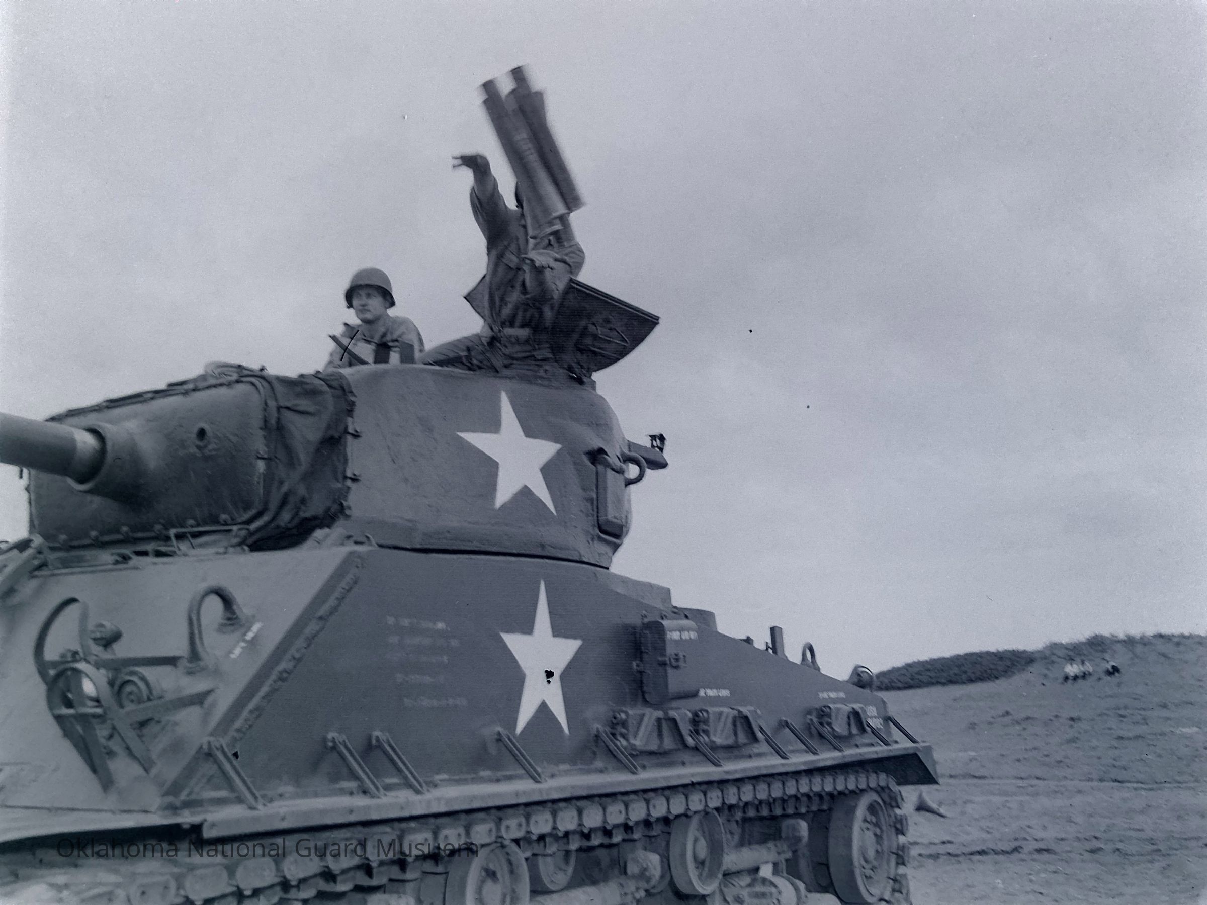 Tank with two soldiers sitting in the turret