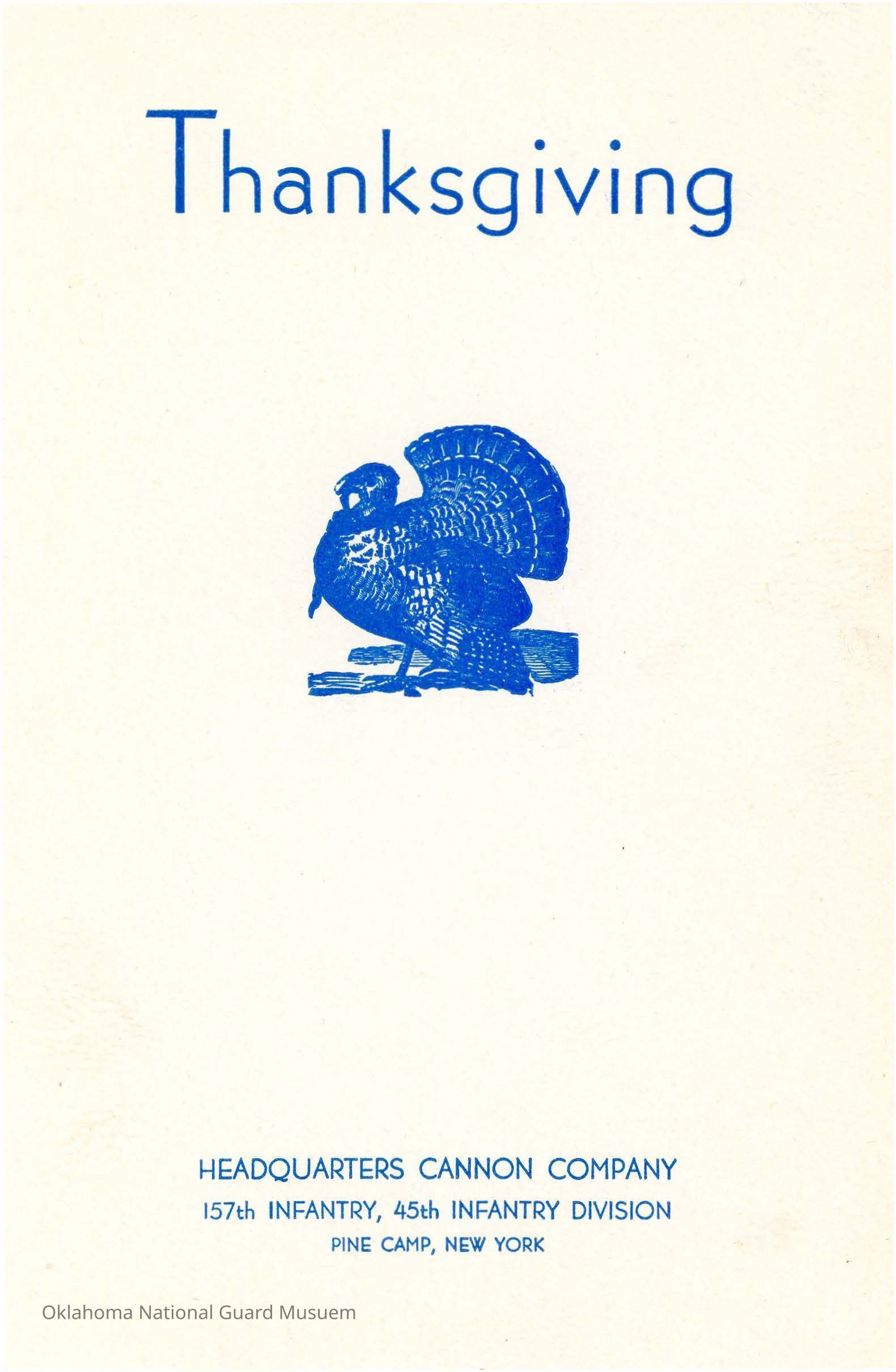 Thanksgiving menu 157th Headquarters Cannon Company
