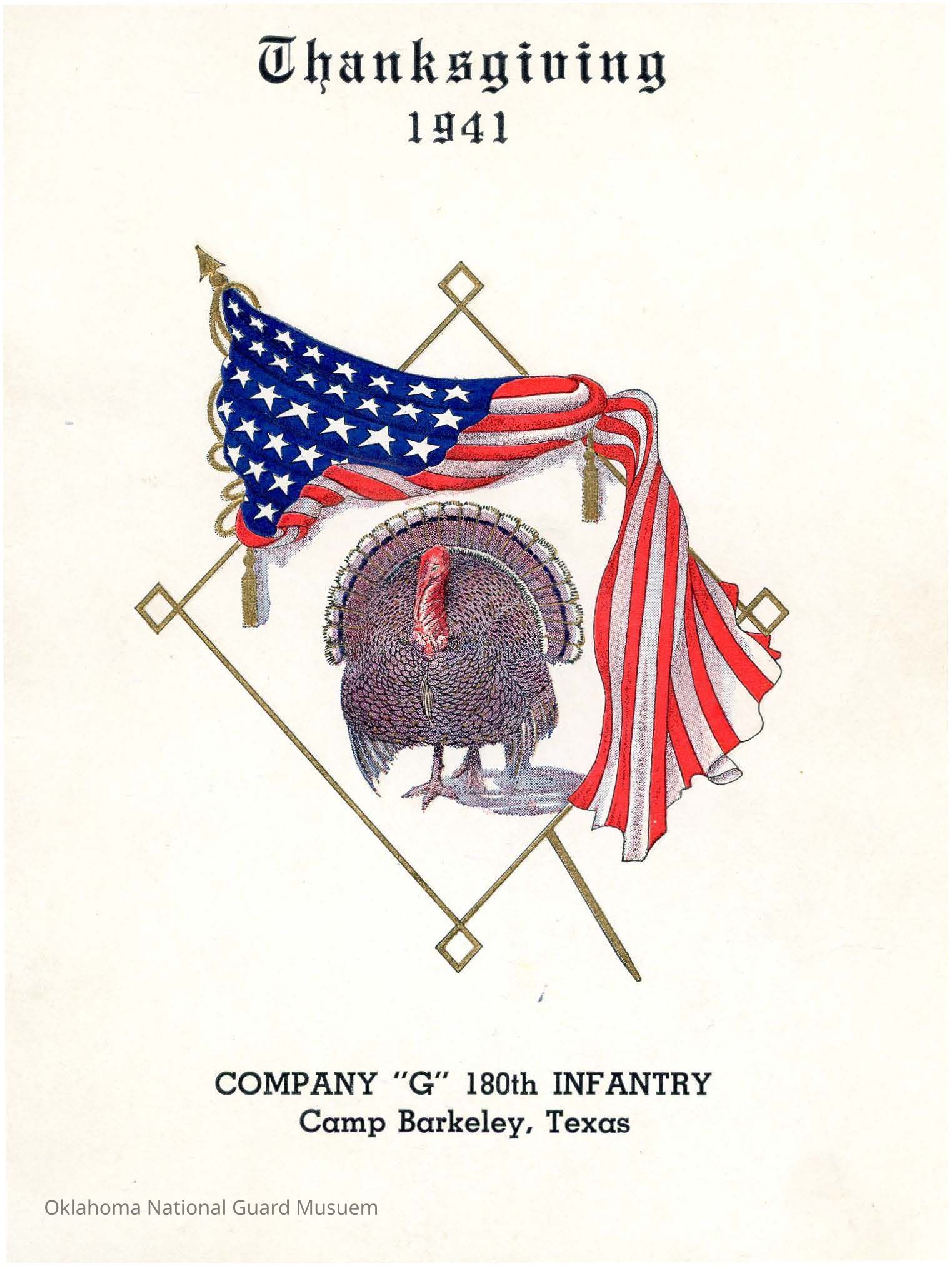 Thanksgiving menu Company G 180th Infantry