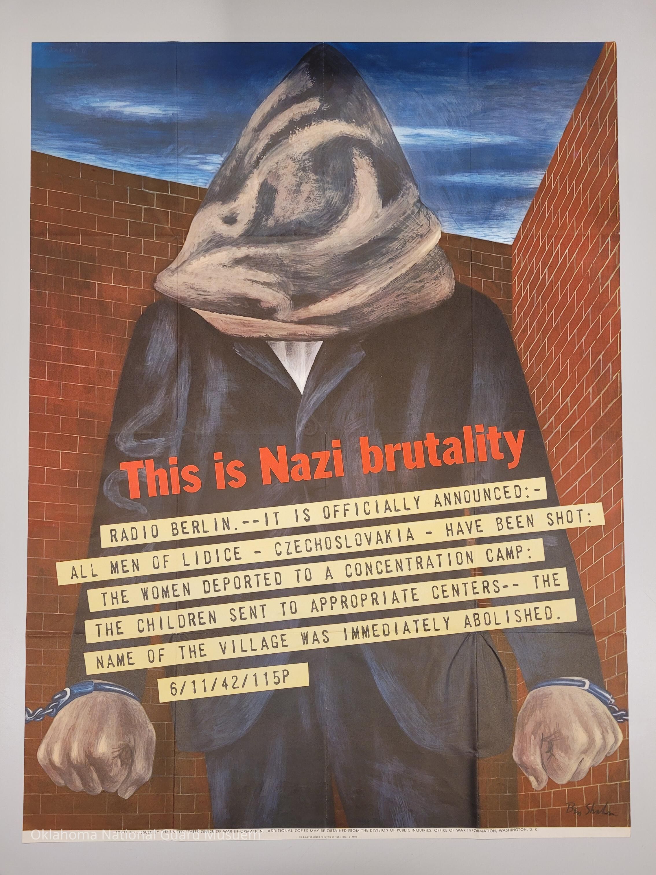 This poster refers to the Lidice massacre, ordered by Hitler as a response to the 1942 assassination of Reinhard Heydrich, chief lieutenant to SS leader Heinrich Himmler and a leading architect of the Holocaust.Collection