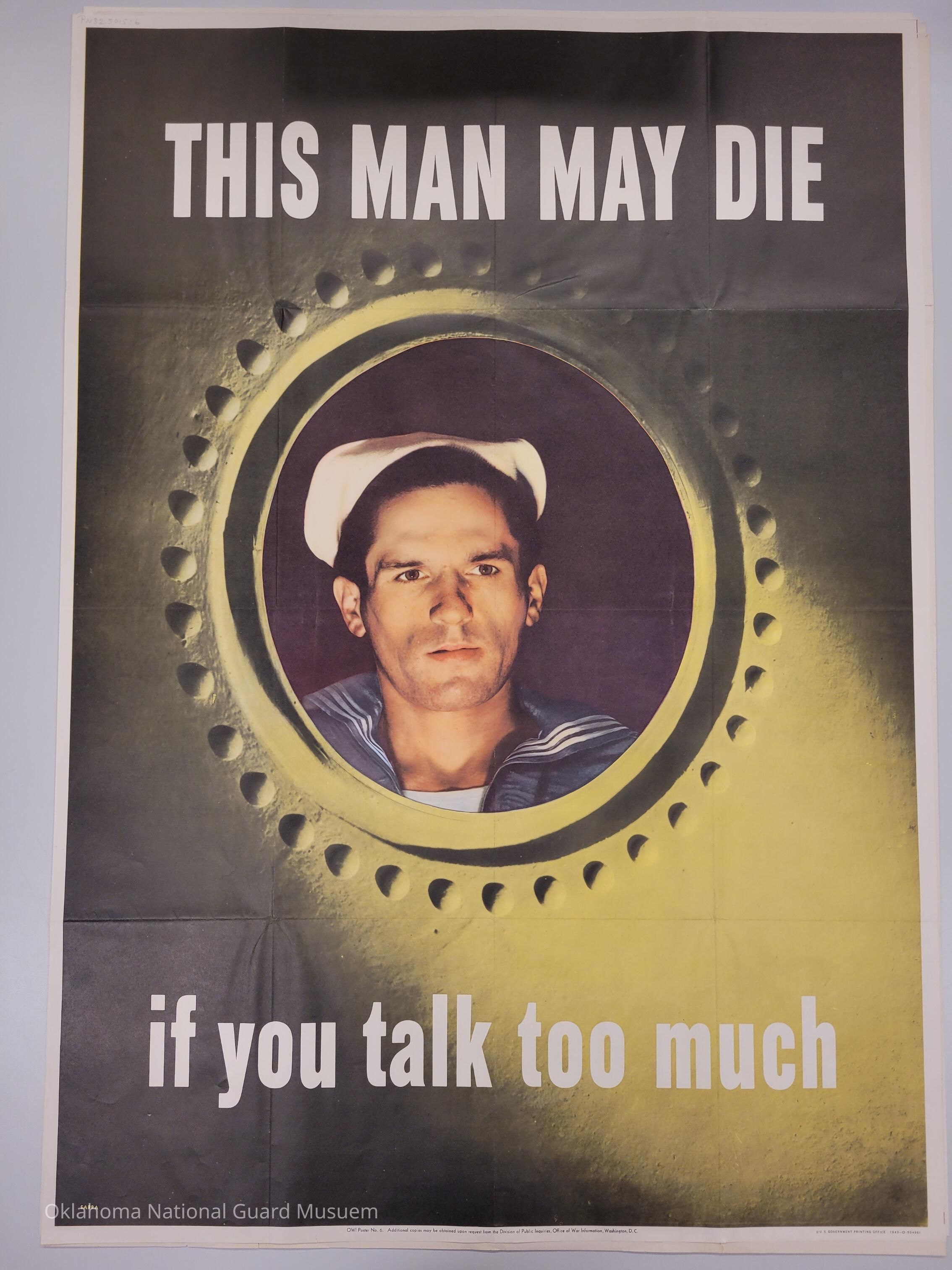 A sailor looking through a porthole window back at the viewer with text above and belowCollection
