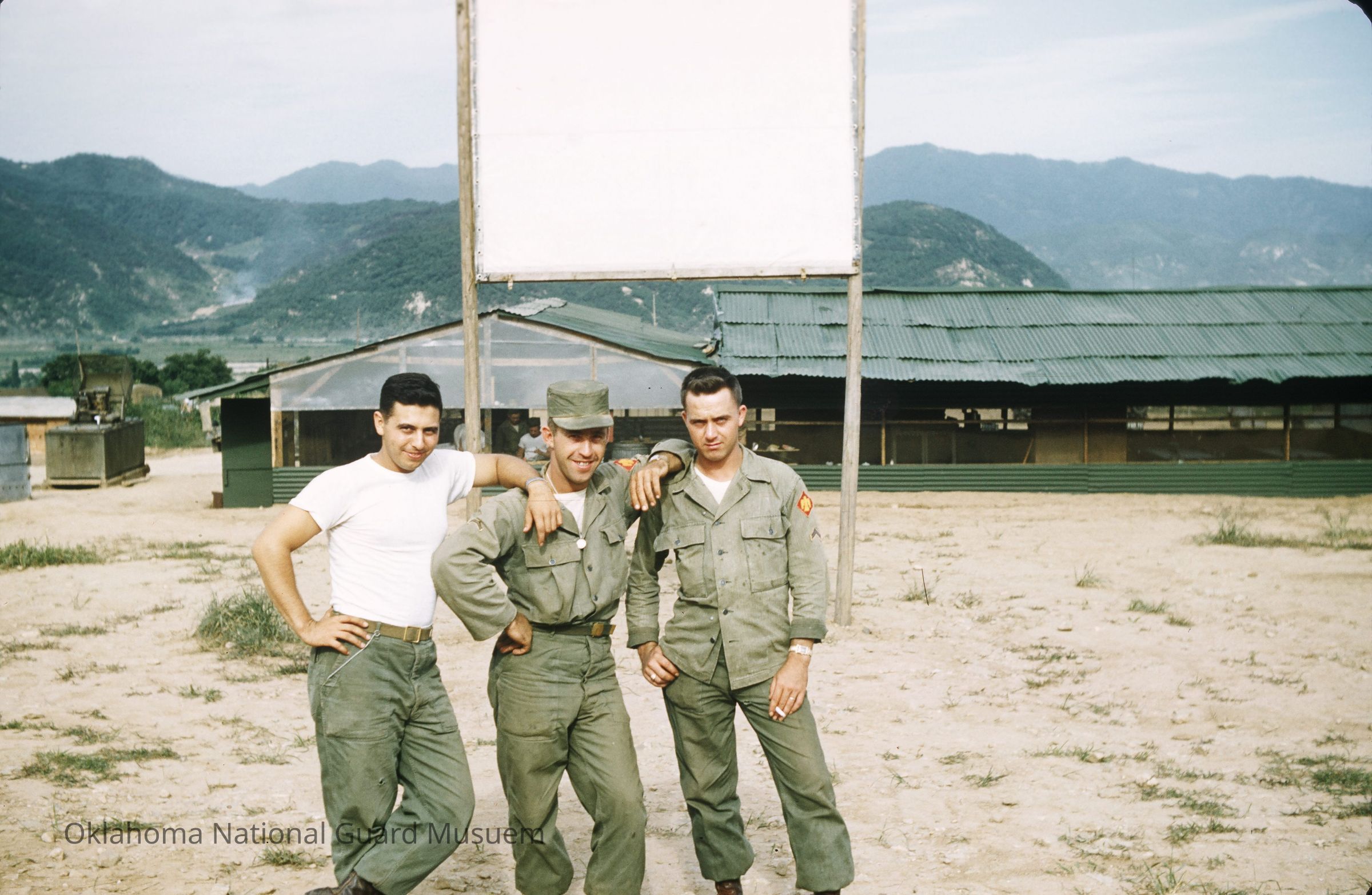 Three soldiers pose for a picture