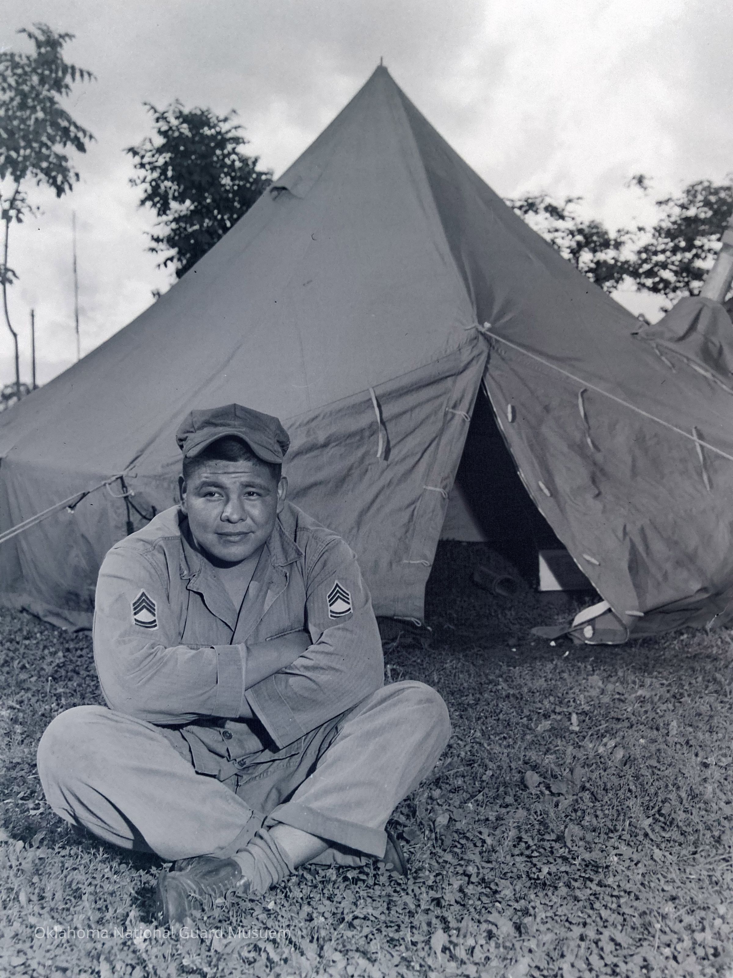 Published in the 45th Division News, Hokkaido, Japan, September 20, 1951 "SFC Tom Gear's ancestors never had it so good as Thunderbirds will have it this winter in the new hex tent. Bear's from Hq. Co., 180th Infantry."Made/Created