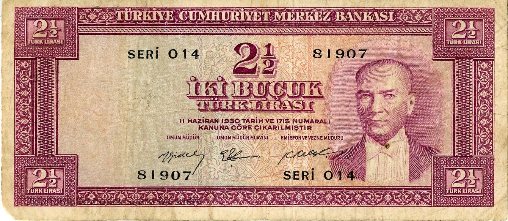 Central Bank of the Turkish Republic, Two and a Half Turkish Lira