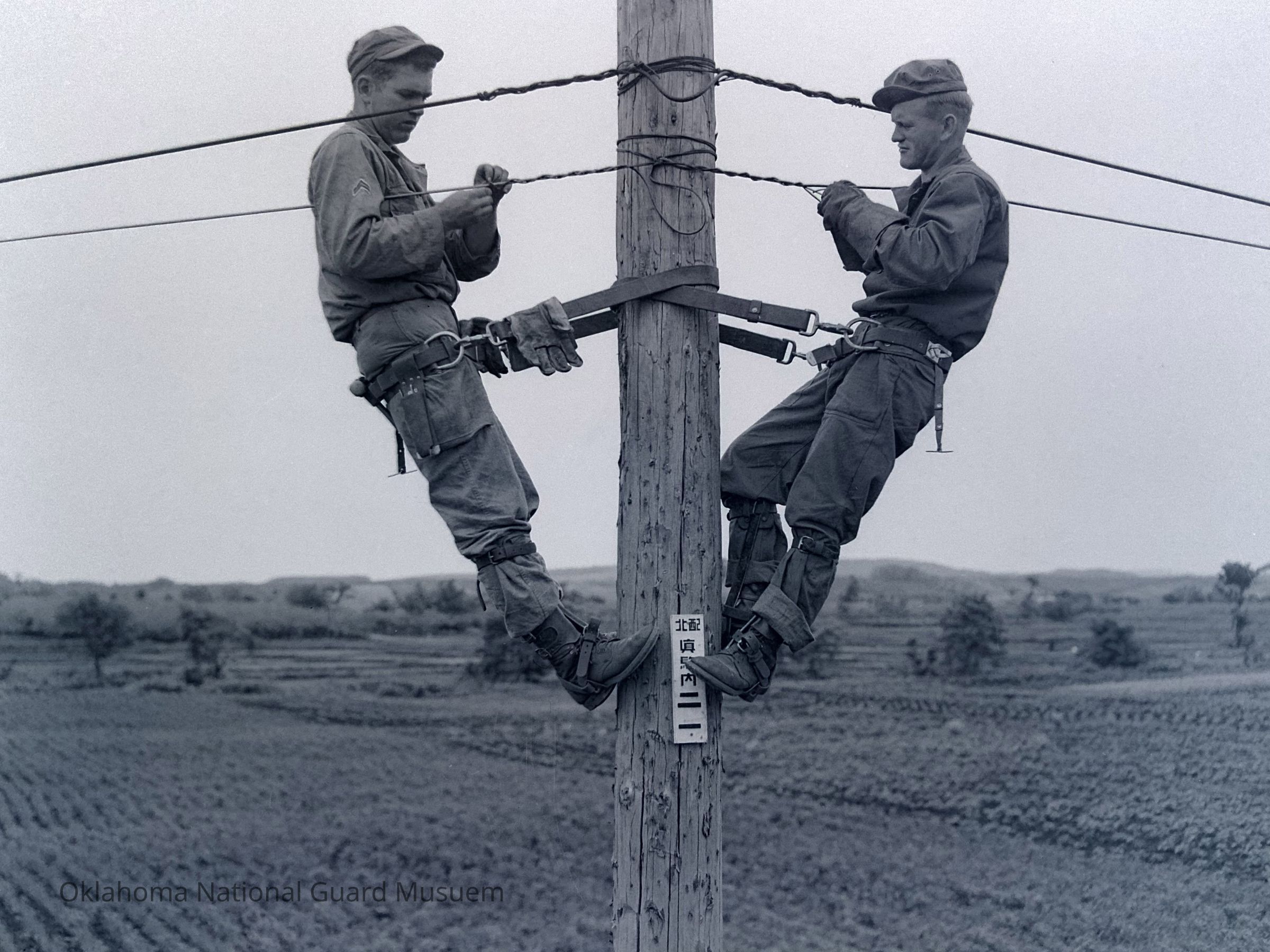 Soldiers, Linemen, Communication cables, Telephone poles, Work