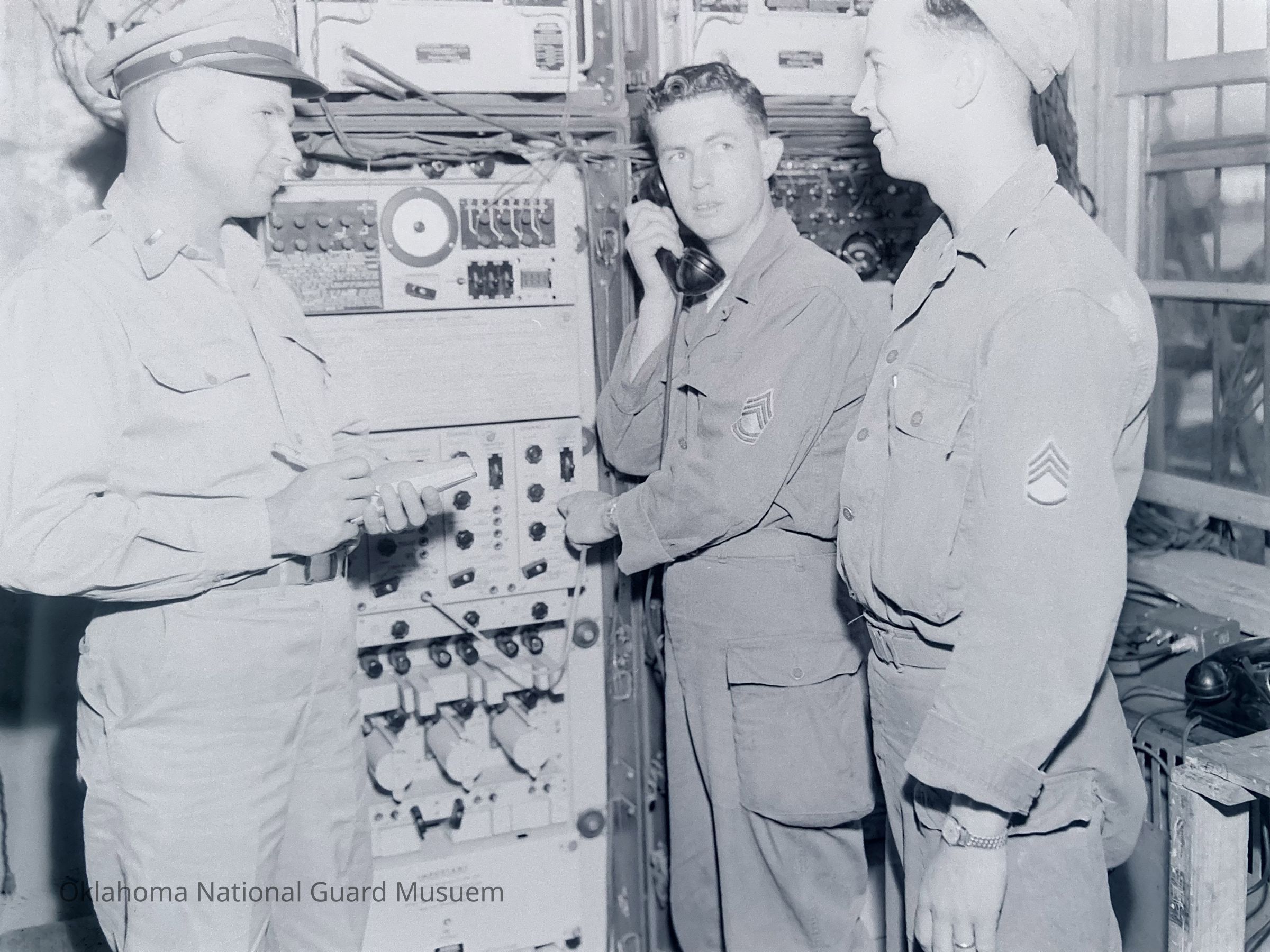 Negative of two soldiers and an Officer using radio gear on Hokkaido, Japan