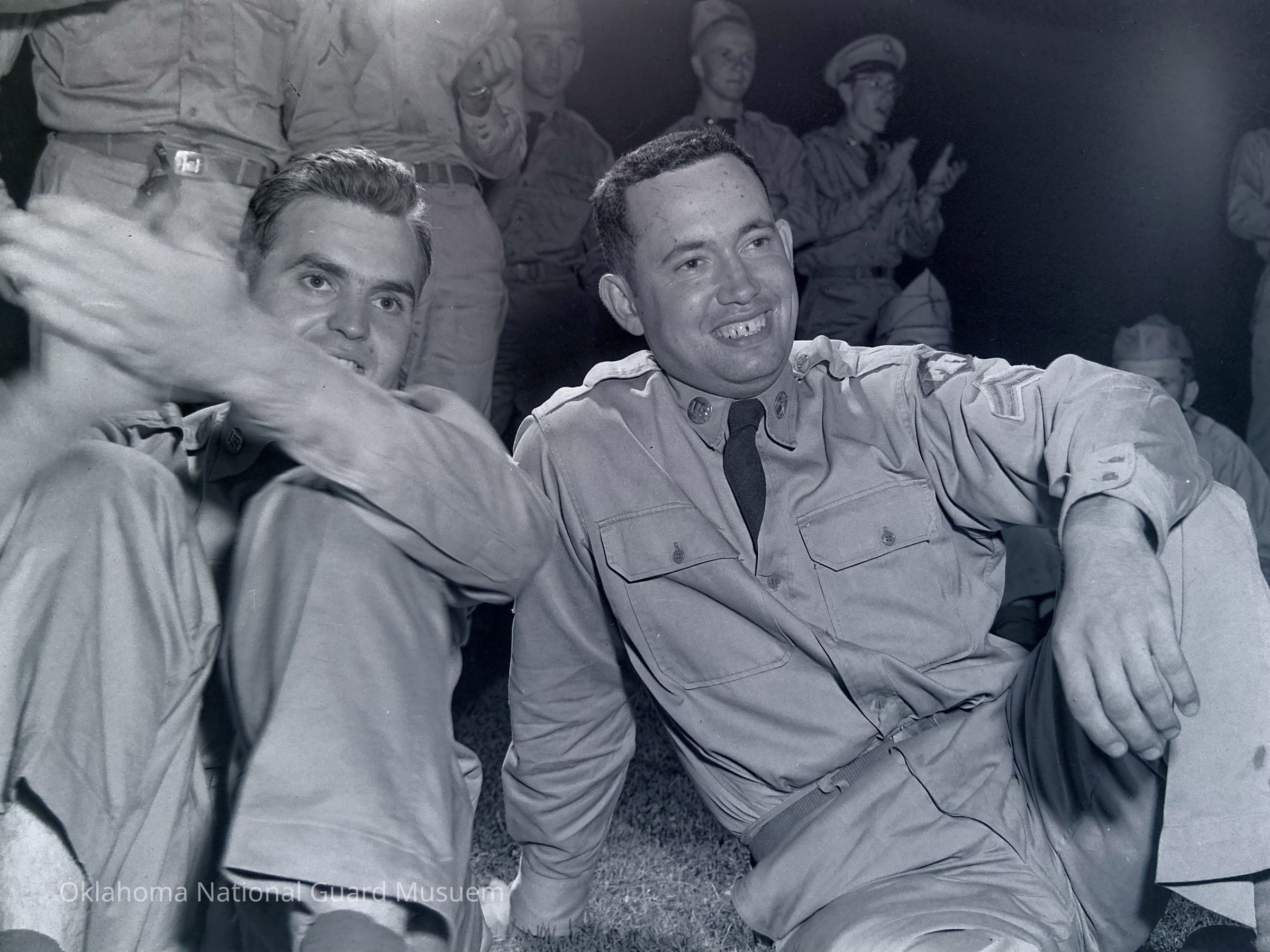 Two soldiers applauding during a show
