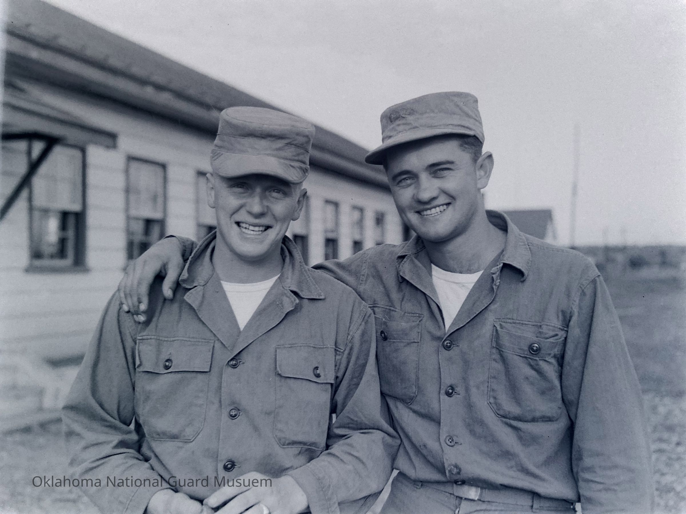 Two soldiers posing for picture