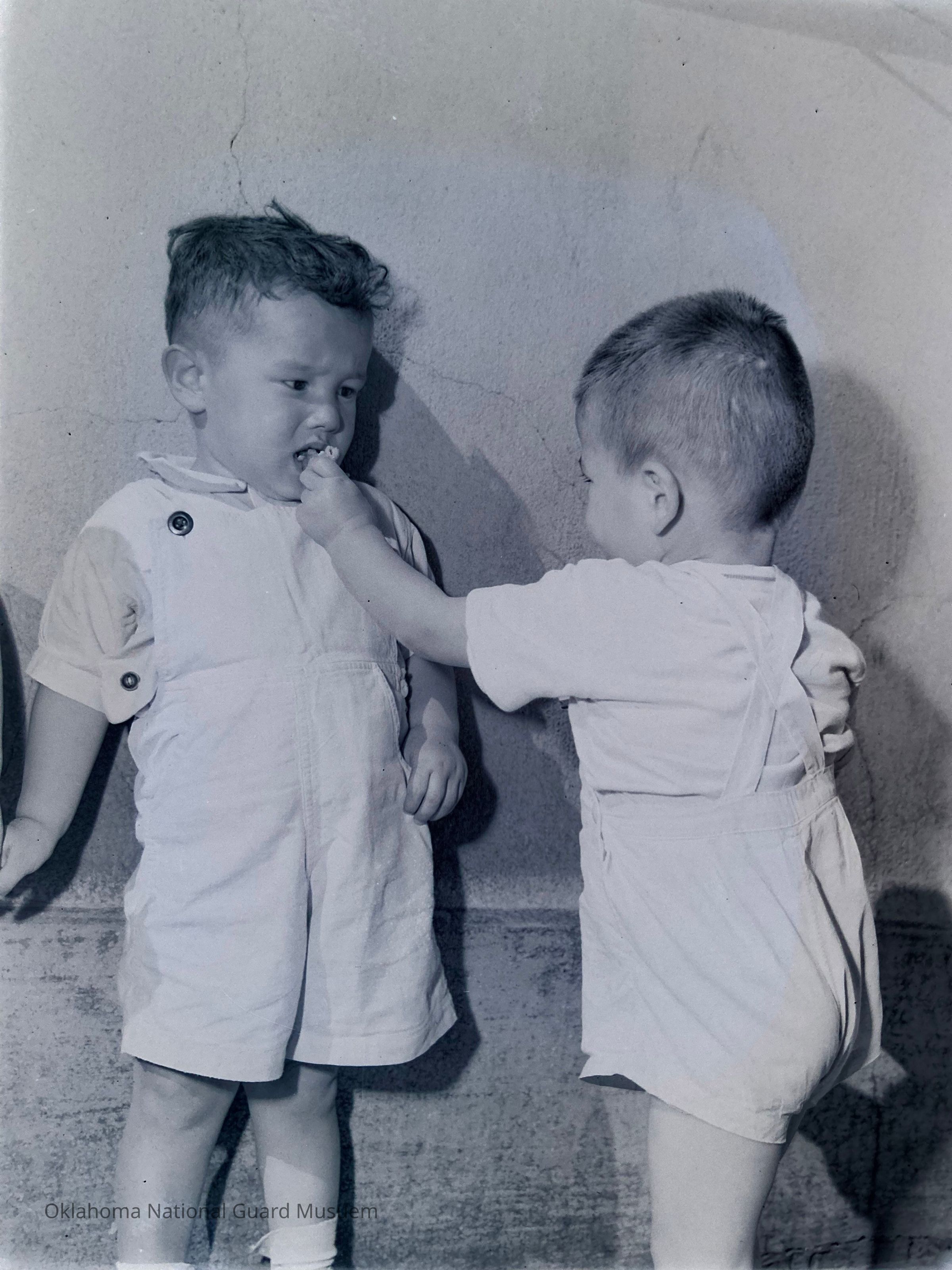 Negative of two young Japanese children on Hokkaido, Japan