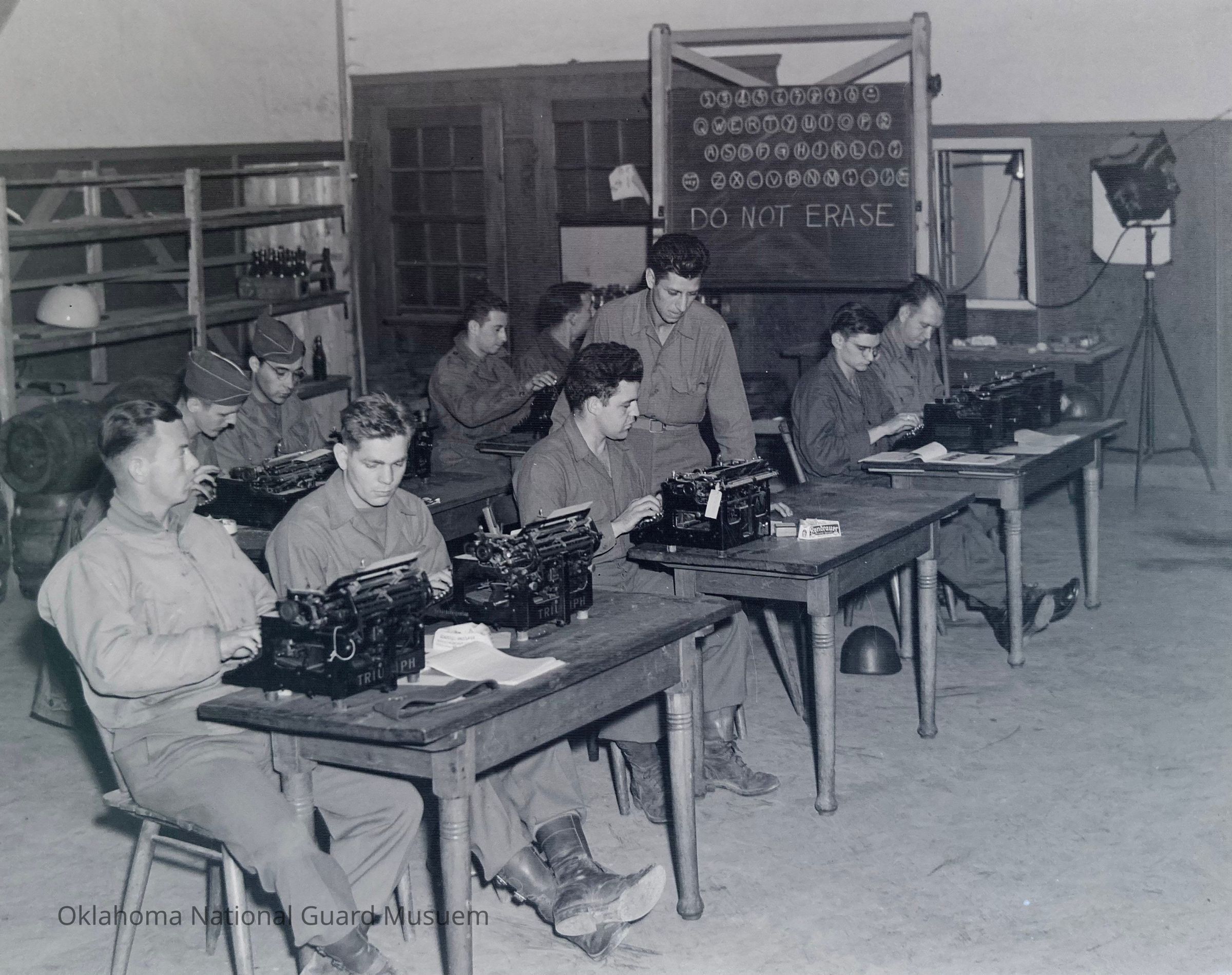 Soldiers, Typing (Writing), Typewriters, Typewriting, Training, Military, Classrooms, Chalkboards, Desks