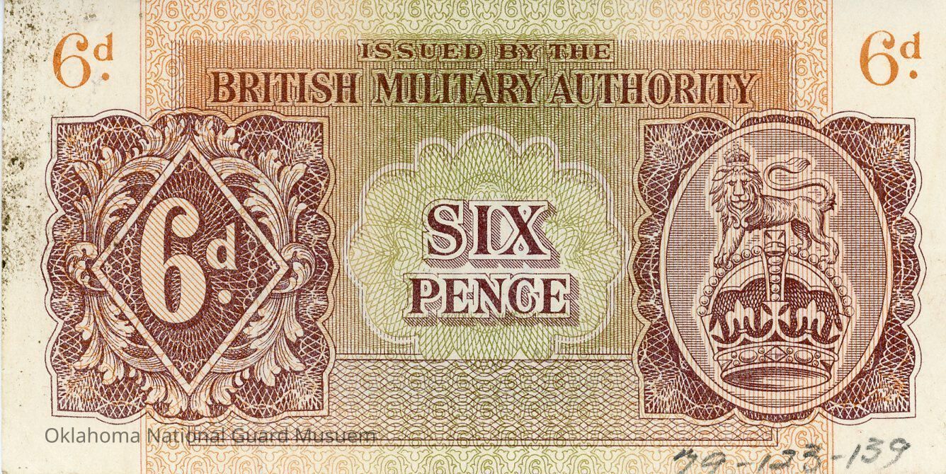ISSUED BY THE BRITISH MILITARY AUTHORITY SIX PENCE 6d.