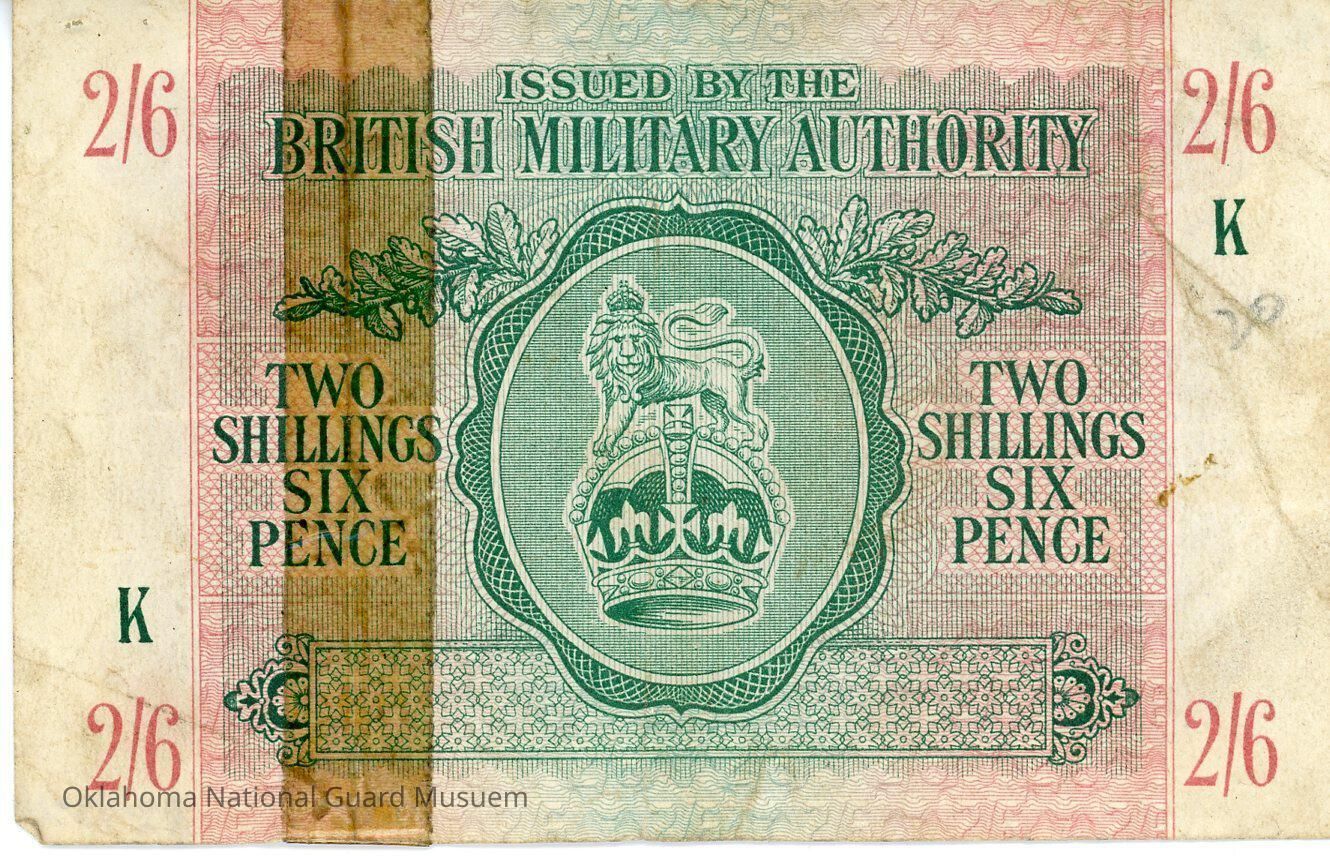 ISSUED BY THE BRITISH MILITARY AUTHORITY TWO SHILLINGS SIX PENCE 2/6