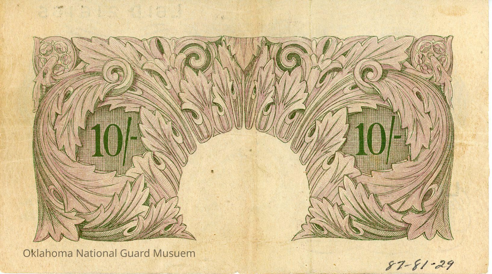 United Kingdom Ten Shillings-1940-1948. Accession number written on reverse in bottom right corner.