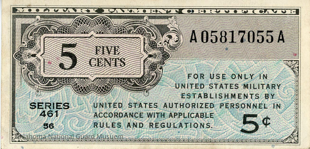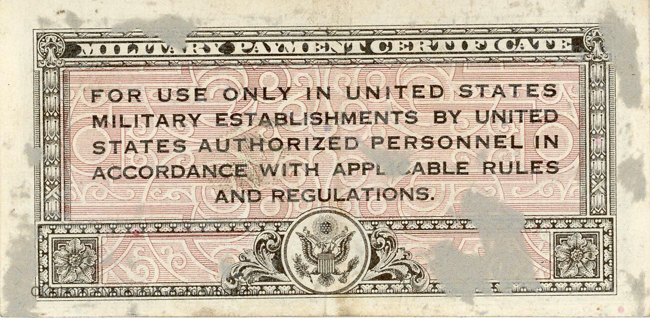 United States Military Payment Certificate Five Cents-1946-1947Context