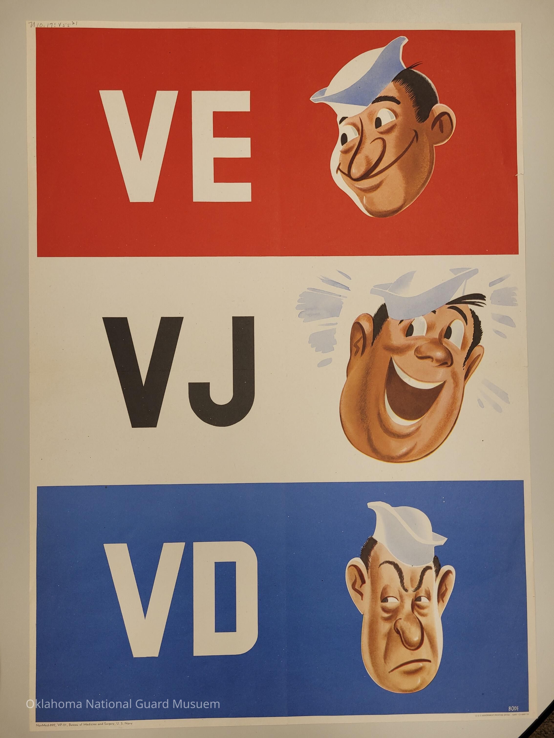 Smiling sailors next to VE (victory in Europe) VJ (victory over Japan) but grouching next to VD