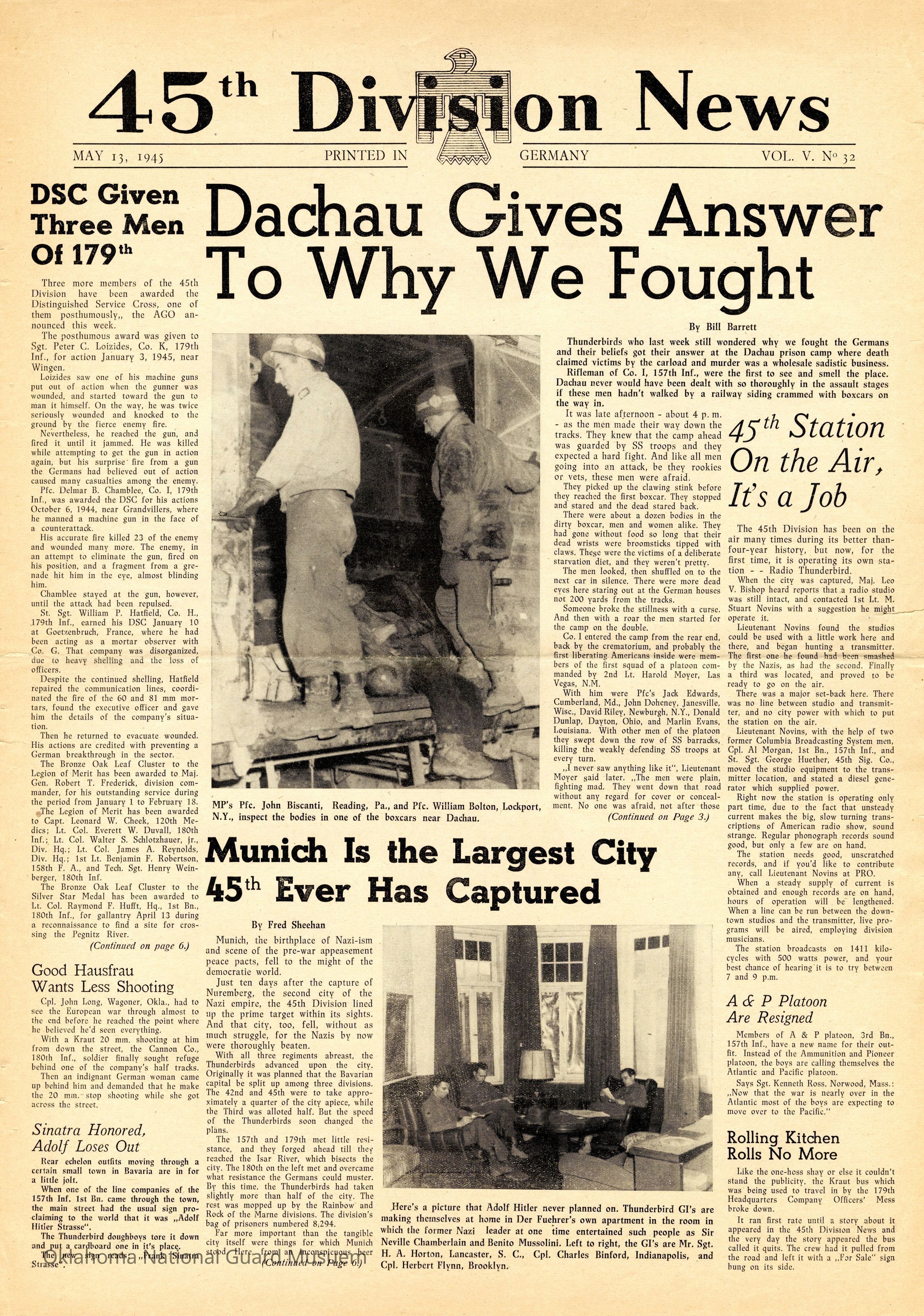 45th Division News front page on the liberation of Dachau Concentration Camp