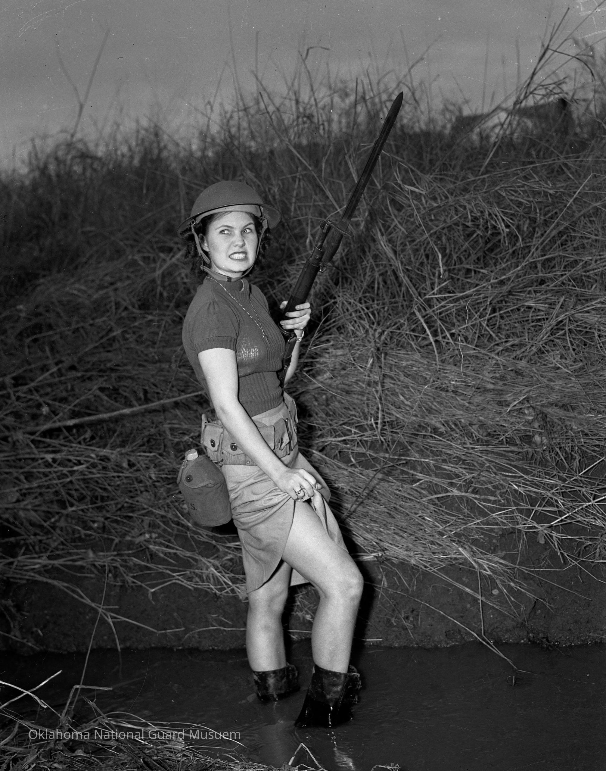 Women, Rifles, Portrait photographs, Water, Bayonets, Cheesecake photographs
