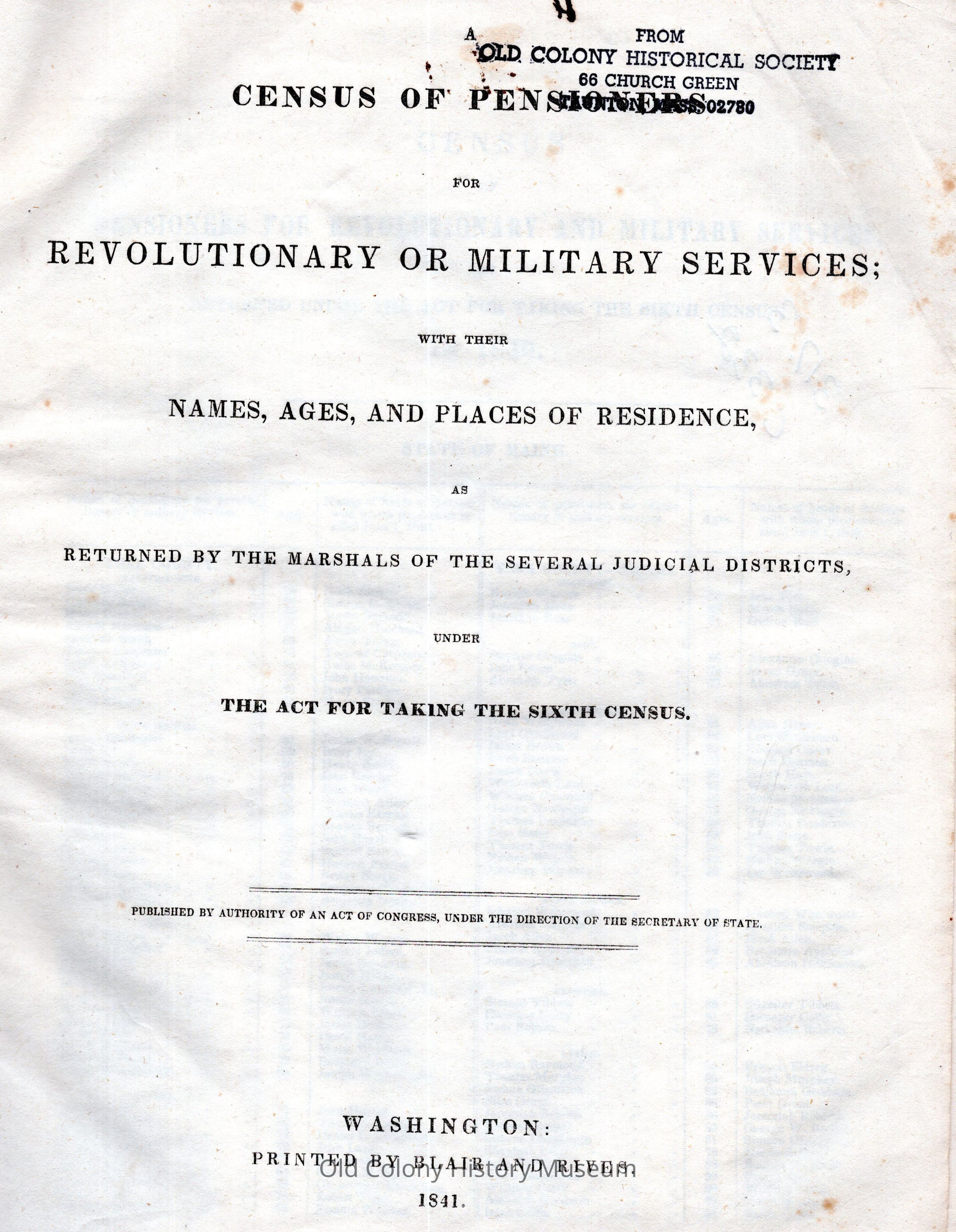 A census of pensioners for revolutionary or military services, with their names, ages, and places of residence, as returned by the marshalls of the several judicial districts, under the act for taking the sixth census.Entry/Object ID