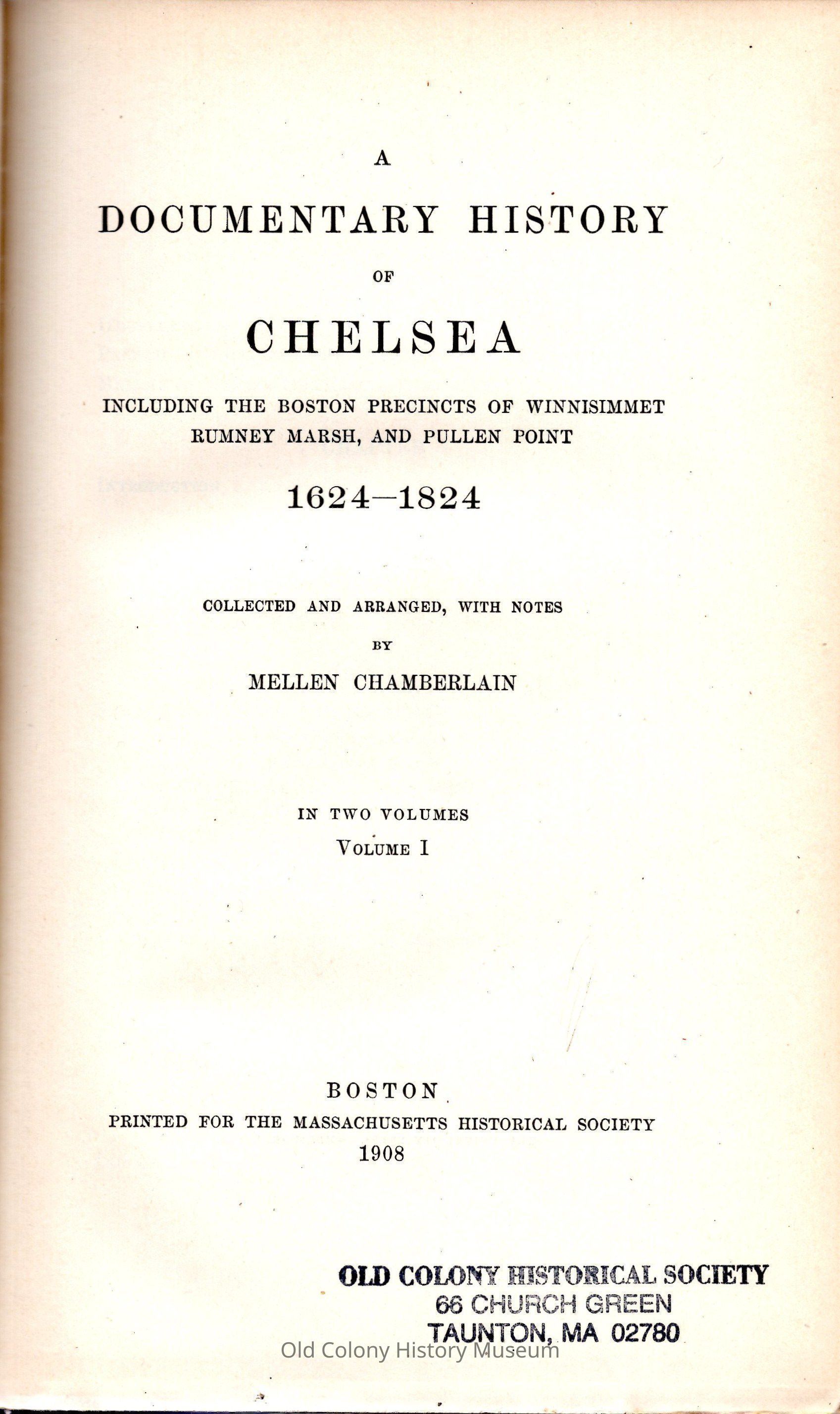 collected and arranged , with notes, by Mellen Chamberlain. Prepared for the press, after the death of the author, by Jenny C. Watts and William R. Cutter, under the direction of a committee of the Massachusetts historical society. "Memoir of Mellen Chamberlain. By Henry W. Haynes"; v. 1, p. (xvii) - xliv.